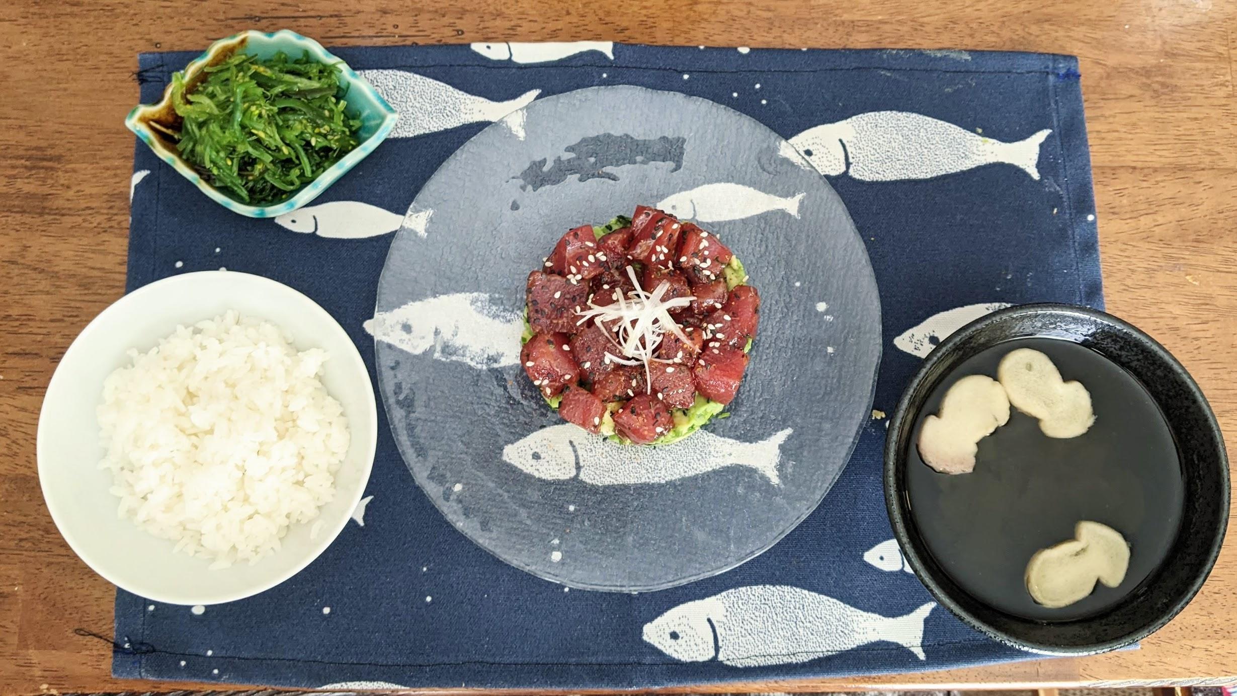 Picked up some nice tuna and avocados at home were at perfect stage so put them together for #lunch . Left the miso out - just clear soup osumashi, and rice and seaweed salad to round out the meal