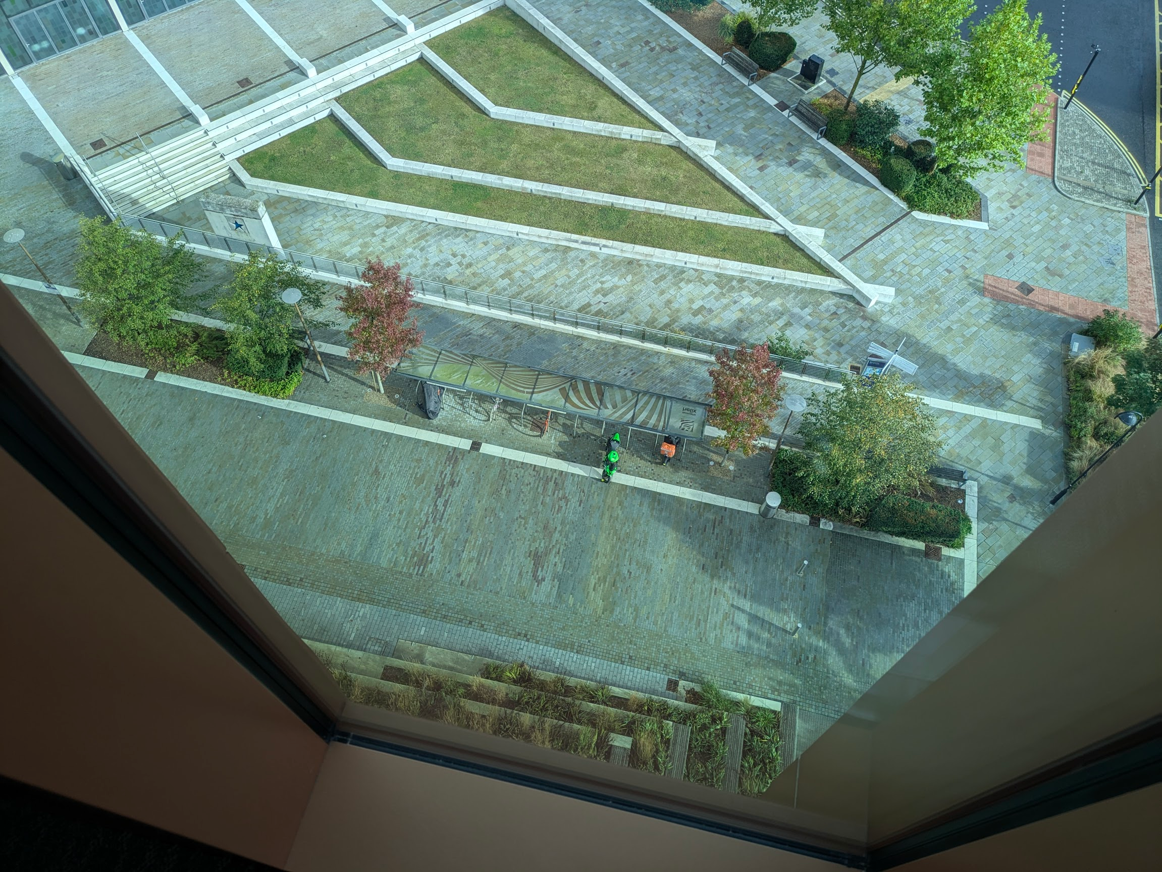 A8. Our office building recently banned electric bicycles from using the basement cycle storage due to insurance restrictions, so this week I had to risk locking up outside the building until they introduce alternative secure storage. Here's the view from my desk on the 6th floor, looking down through the window and trying to make sure it's still there…