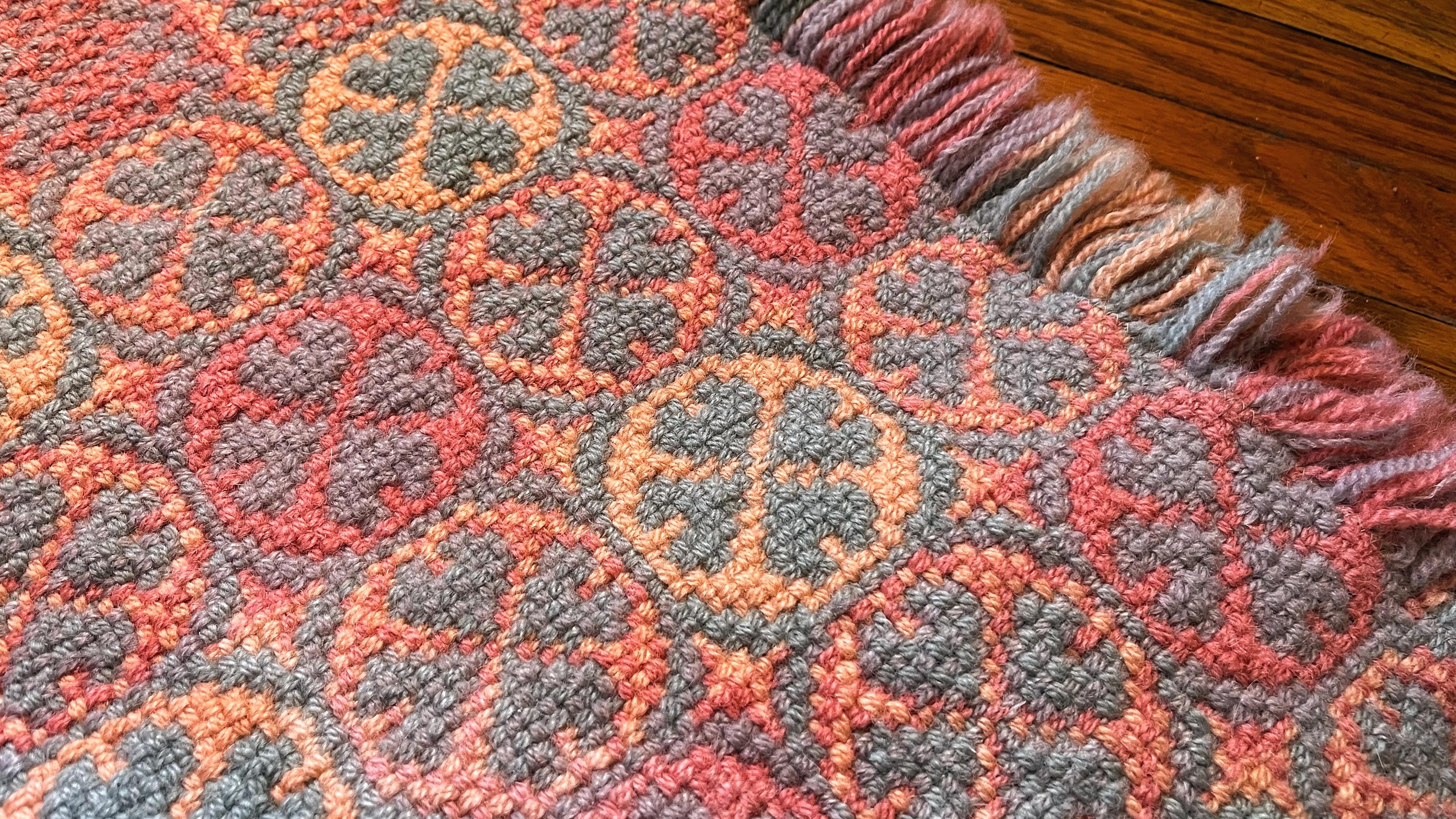 About a week ago, I was out biking and came across a “FREE” pile of stuff out on someone’s sidewalk. There was this woven runner rug in the pile. I was afraid it might be torn, or stained, or reeking of cat pee, but it seemed OK and so I threw it in my bike basket. I just got to washing and drying it today, and it’s awesome! 🧶😊