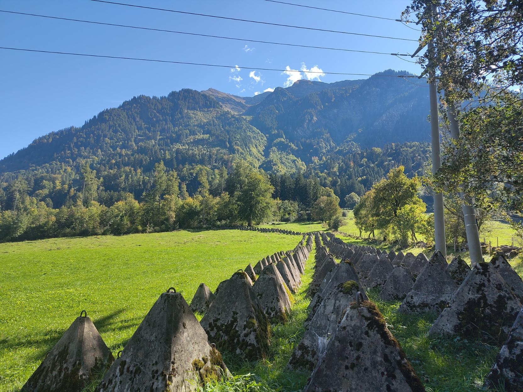 The last picture shows anti-tank dragon teeth from WW II. The strategy from Switzerland was to basically give up the (indefensible) flatland and retreat in the mountains. These dragon teeth are still a remembrance of that.
