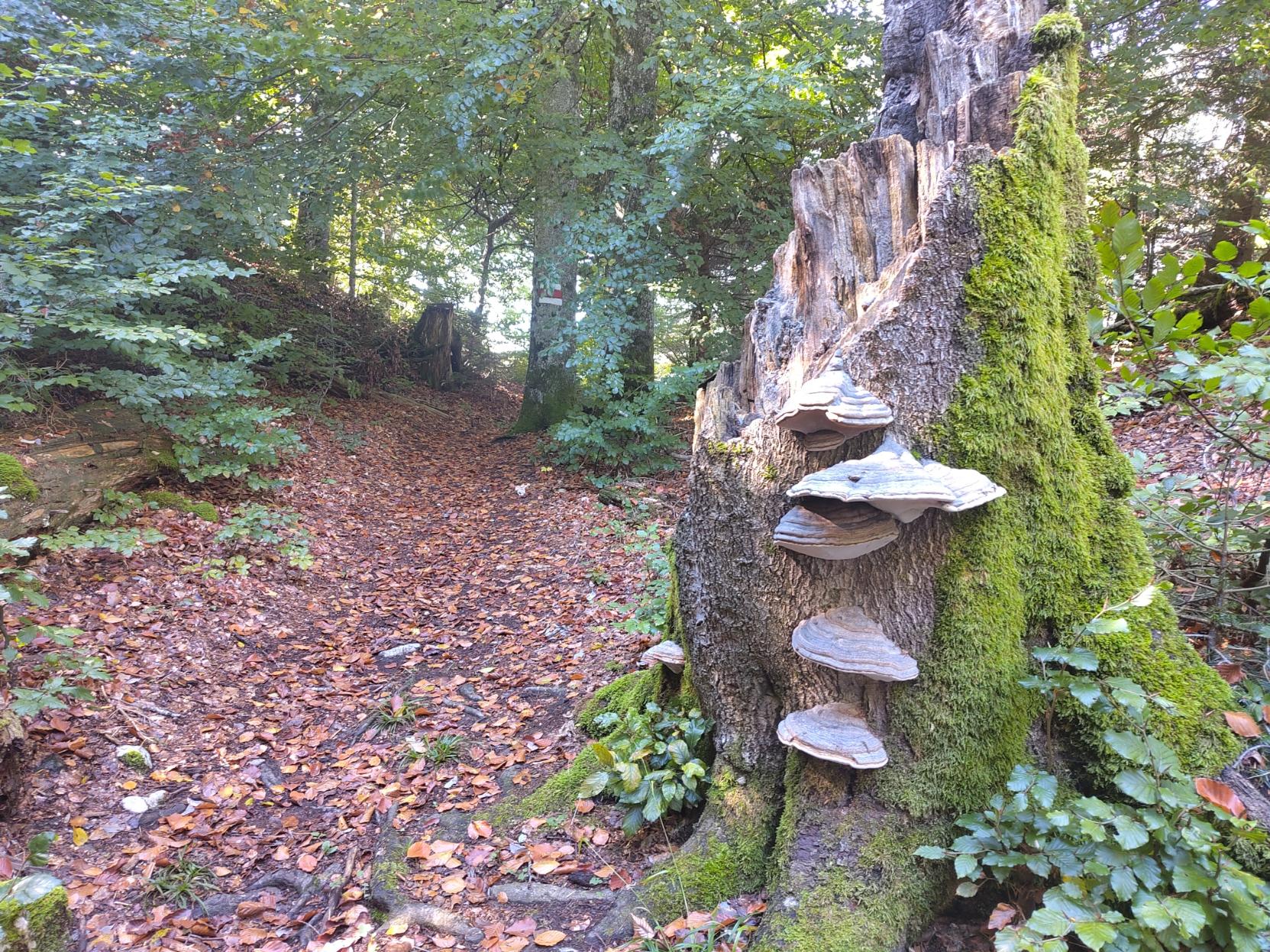 Took the opportunity between two working session to go out and enjoy the beautiful weather. Because of my available time and conditions, I chose to go up a short but steep climb. It is not just steep, but also sometimes very narrow and slippery (moss, roots, leaves). Later in the year it is there not so recommended.