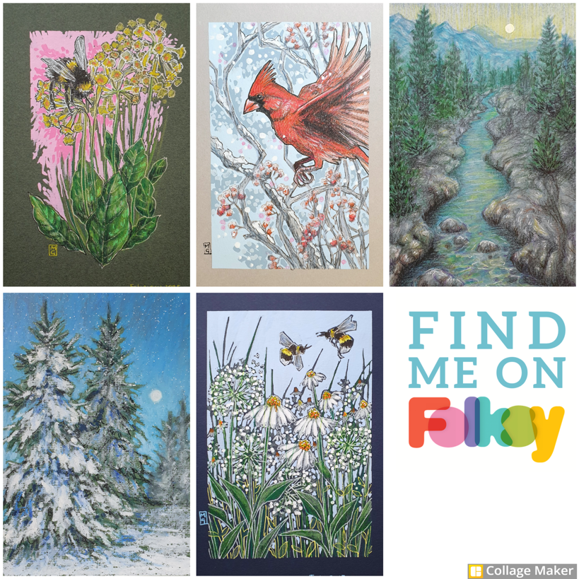 If you are interested in seeing or purchasing my art, I'd love you to visit my Folksy shop. Many items are reduced for my January sale...
