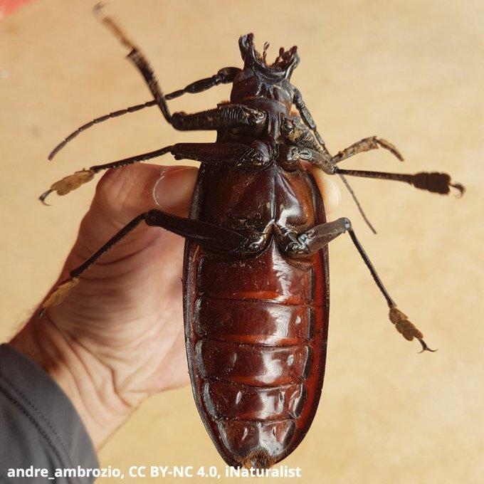 That would be the titan beetle. At up to 6.5 in (16.5 cm) long, scientists think this enormous insect is about as big as a beetle can get. It can be found in parts of South America.