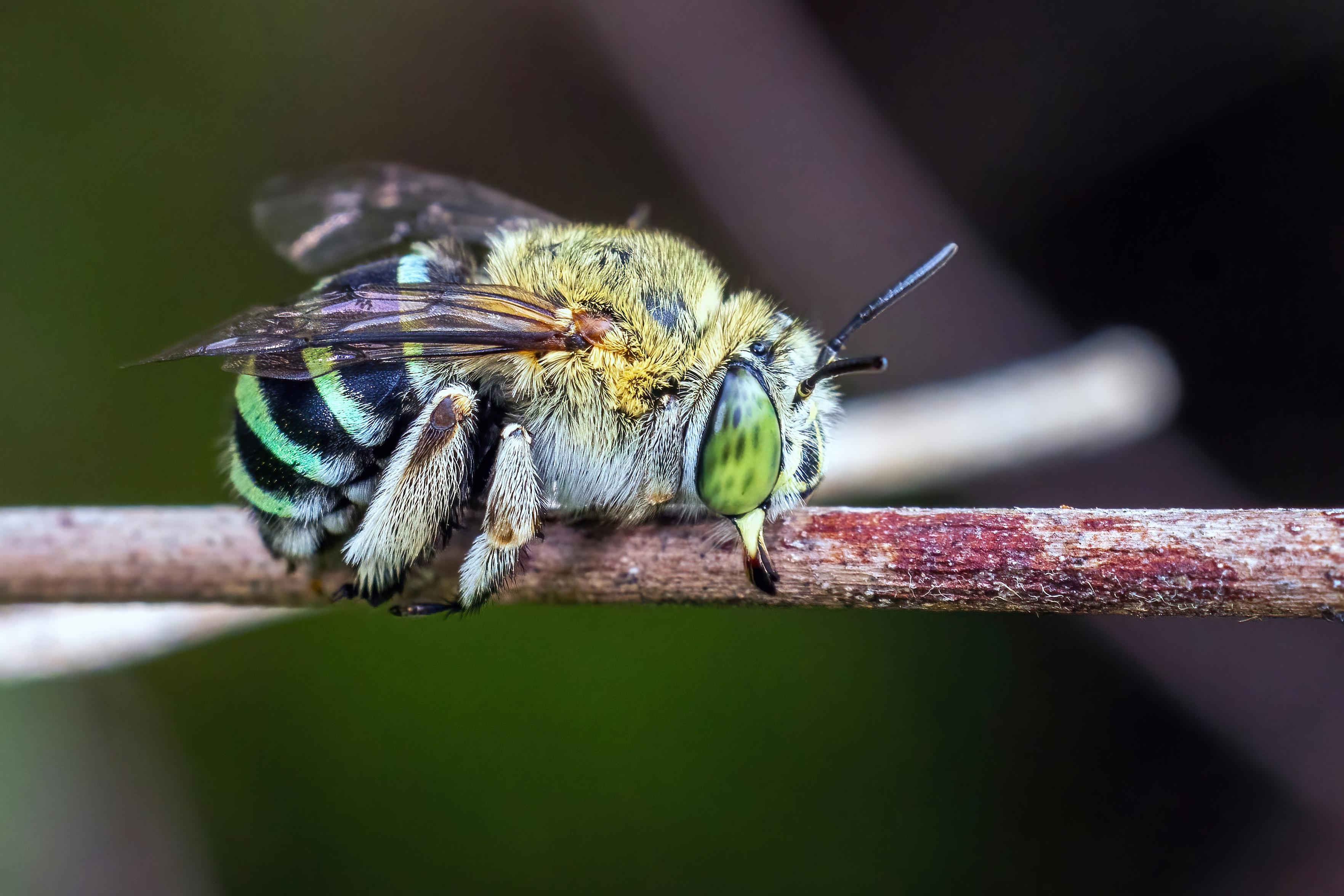 As described this 16” x 20” linocut print combines gold text in a central circle reading “OUR FATE” arching upwards, “IS TIED” horizontally across the middle, “TO THAT OF THE INSECTS” arching downwards in two lines with insects. Clockwise from top: two leaf cutter bees (Megachile relativa and M. brevis), the Imperial moth (Eacles imperialis), the Virgin Tiger moth (Apantesis virgo), an Isabella’s Longwings butterfly (Nymphalidae Eueides isabella), a blue orchard mason bee (Osmia lignaria), a firefly (Photinus pyralis), the rusty patched bumblebee (Bombus affinis), a white underwing moth (Catocala relicta), an eastern carpenter bee (Xylocopa virginica), a sweat bee (Agapostemon sericeus), a hummingbird clearwing moth (Hermaris thysbe), the common eastern bumblebee (B. impatiens), a long-horned bee (Melissodes sp.), a monarch butterfly (Danaus plexippus) and centre: eastern snail-shell nesting bee (O. conjuncta).