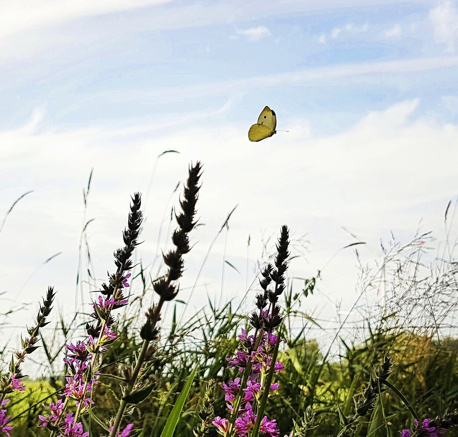 Kohlweißling über Blutweiderich (Lythrum salicaria)