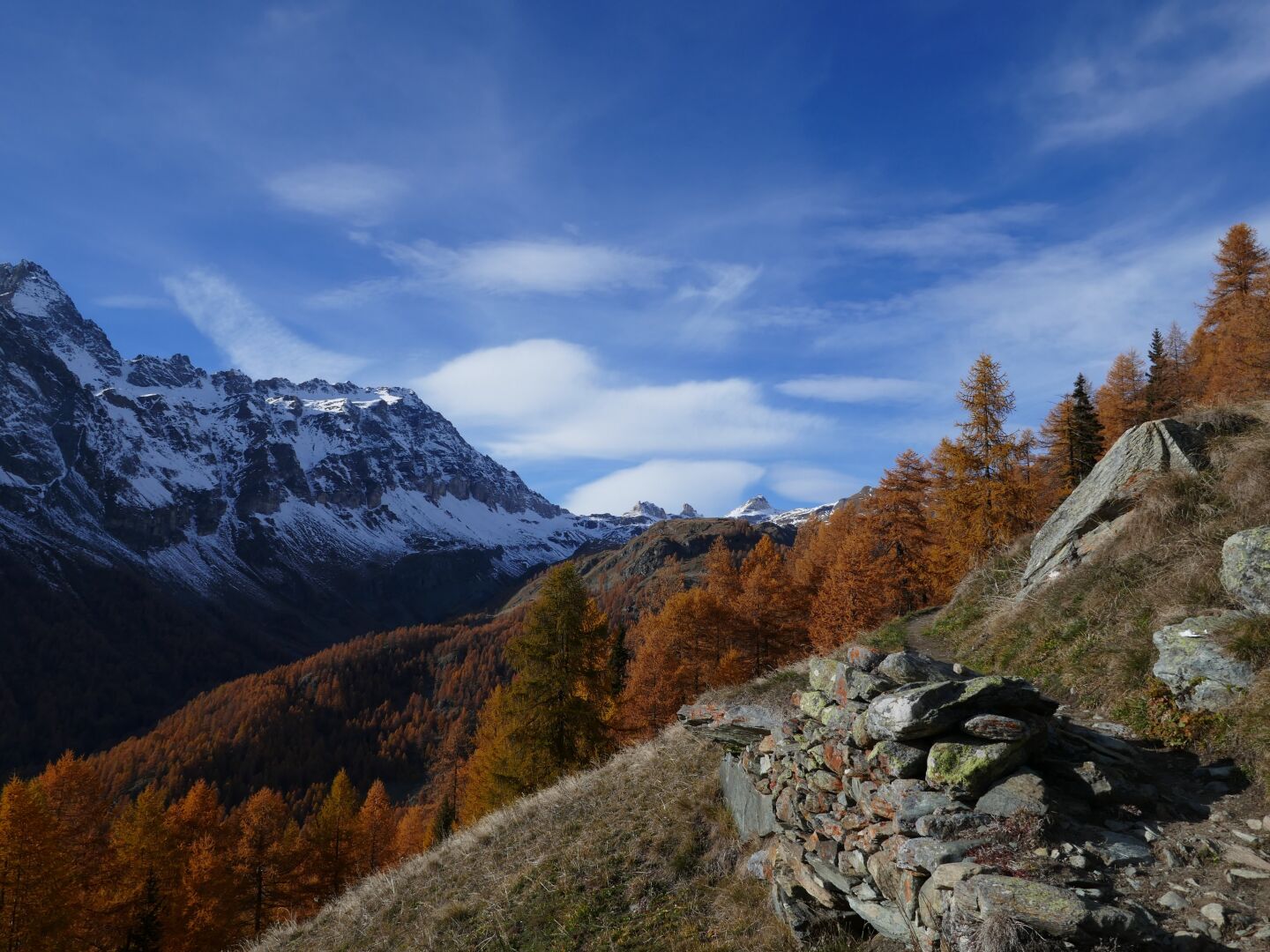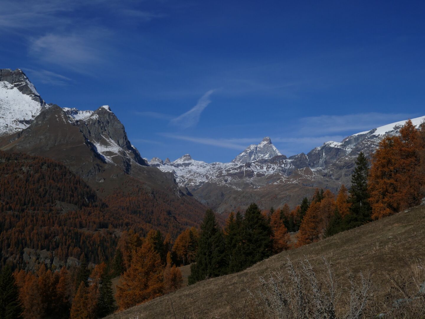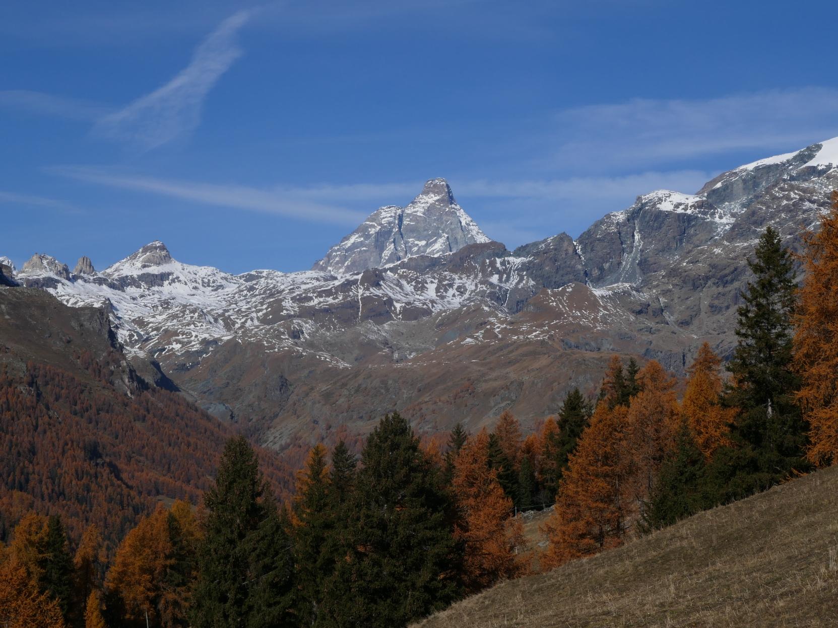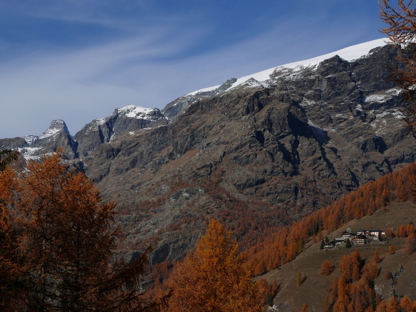 Fantastic hike today near Champoluc with views on majestic mountains like the Matterhorn and Monte Rosa. The colours of snow and leaves were vibrant and complementary.