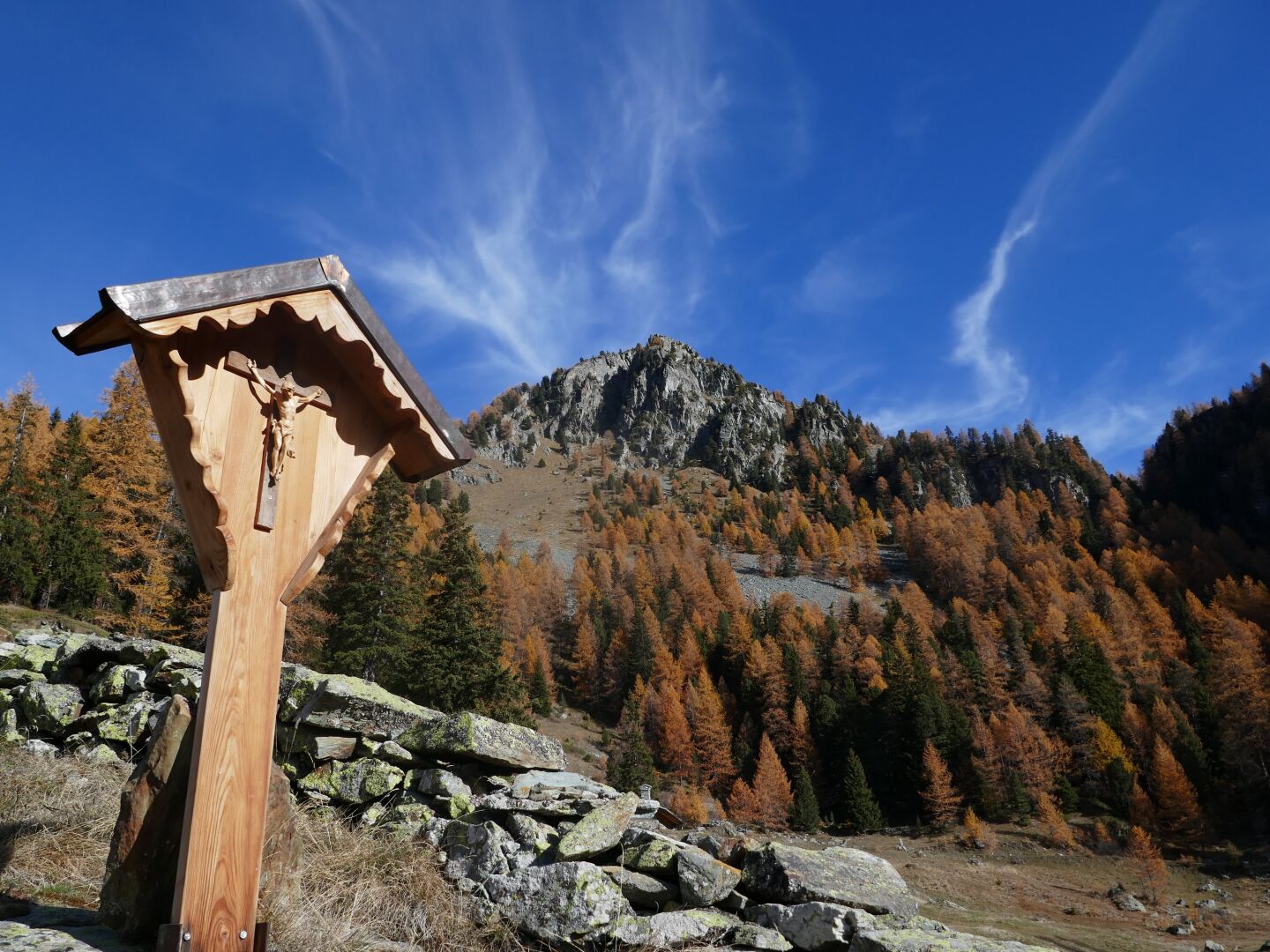 We opted for a start by cable car as it was still very cold in the shades and the cabnle car brought us up to the sun warmth. It was even T-shirt weather up there. An easy Höhenweg took us to two small settlements, in pre-winter sleep. For the winter they will wake up to serve skiers and winter hikers.