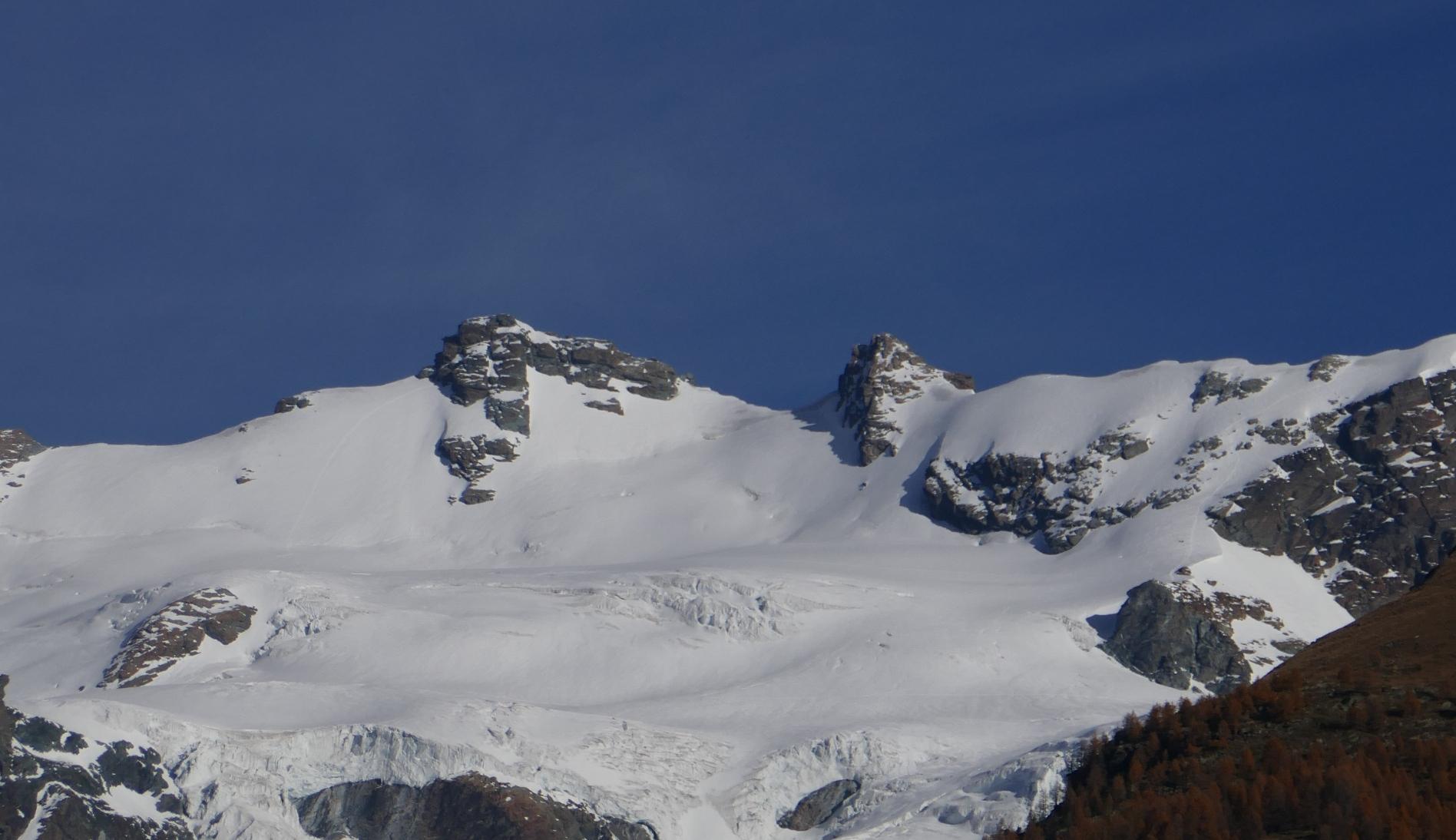 The panorama shows the Walliser Breithorn (the highest point not visible, which is slightly to the left) and the "twins" Castor and Pollux.