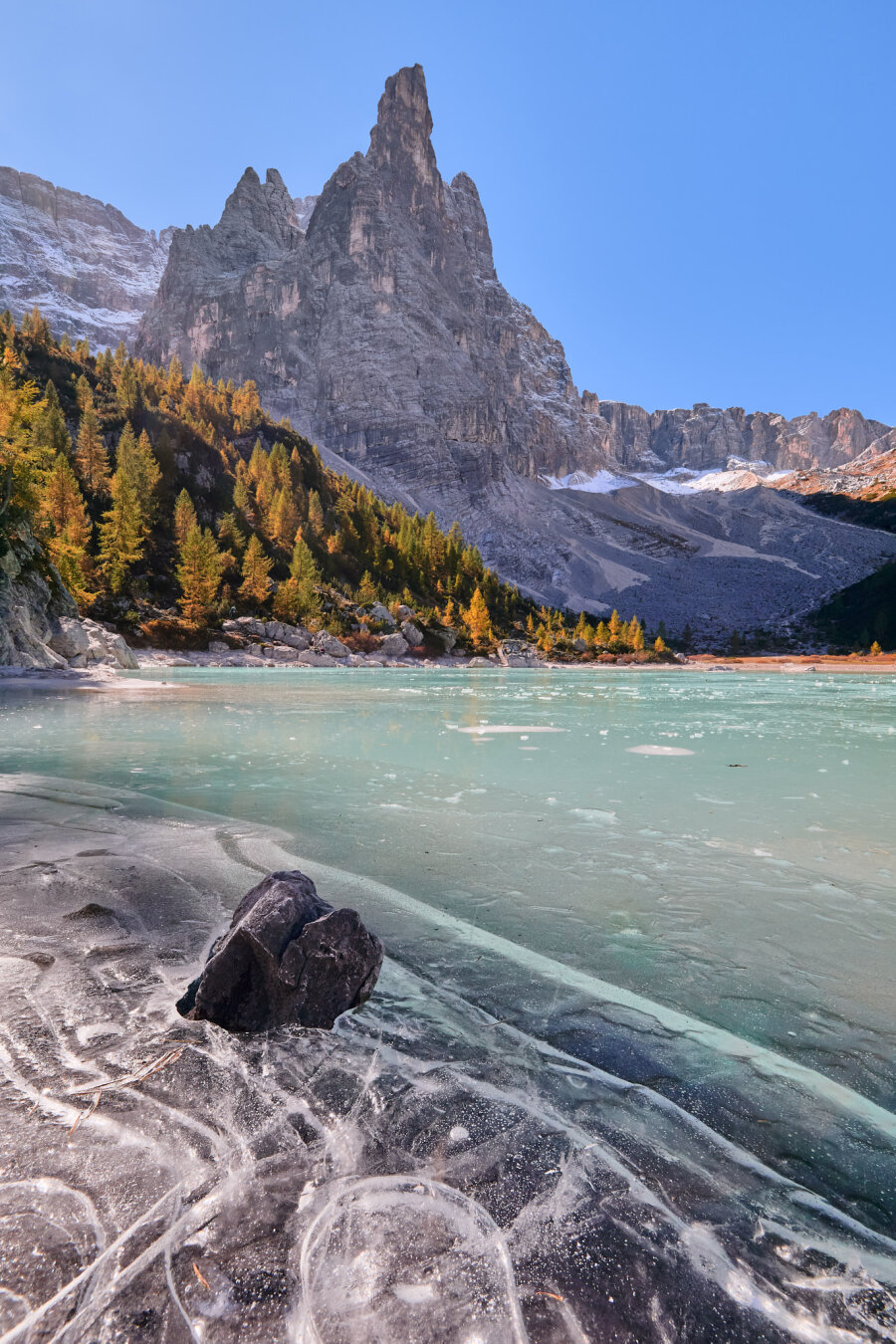 #landscape #landscapephotography #mountains #mountainview #mountainscape #lake #mountainlake #frozen #cold #snow #larch #trees #autumn #fallcolours #vanguard #canon #5dmarkiv #1635mm #italy #italia #dolomites #dolomiti #veneto #lagodisorapis #puntasorapis