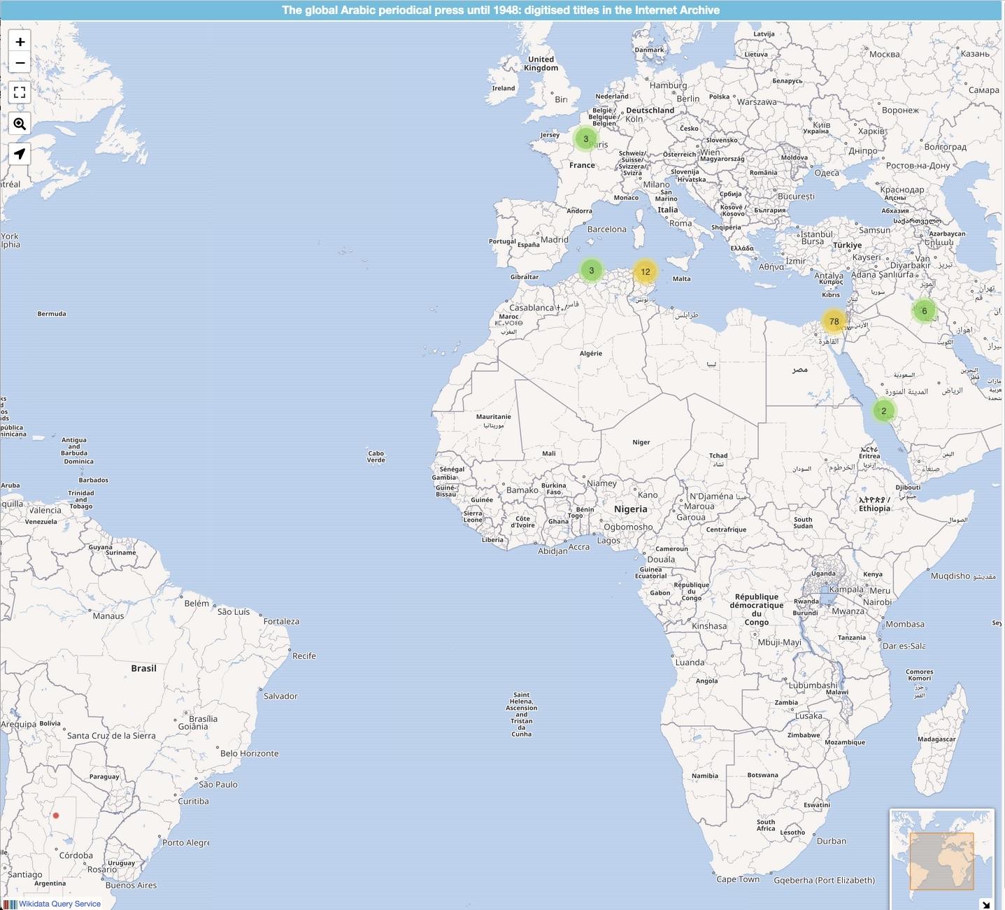 The API returned some 4500+ items for the keywords "جريدة", "مجلة", and "صحيفة", of which I could identify 781 as pertaining to 100 individual Arabic periodicals published before 1930. Links to all of these have been uploaded to #Wikidata, which will increase their visibility to scholars and the interested public.