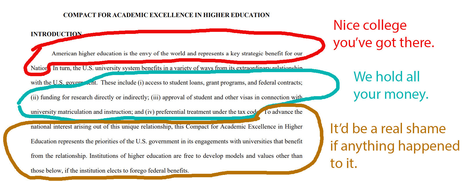 "The clear aim of the compact is to place universities under federal control... Our institutions might seem to benefit from making a “deal” in the short term, but everyone loses in a world where American universities sign away their independence."