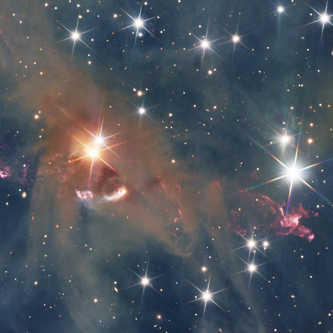 Another area of interest is the reddish area in the upper part of the image, where the Elephant's Trunk Nebula is located.