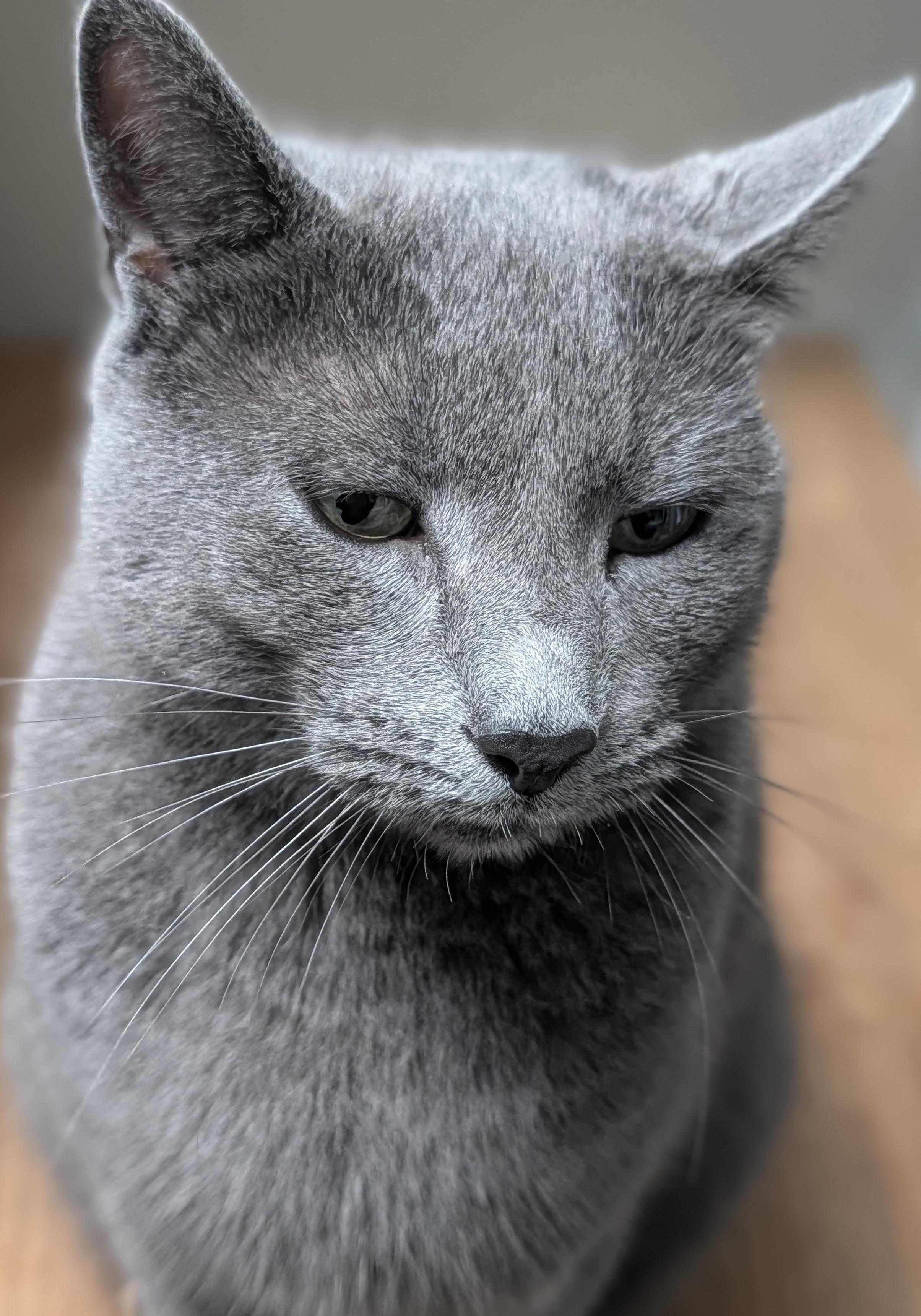 📷 Heard a loud MEOW at the door just after carrying in a few groceries this afternoon. This kitty jumped off the porch when I opened the door, so I stood there a minute, and eventually realized they were watching me from a spot behind the car.
