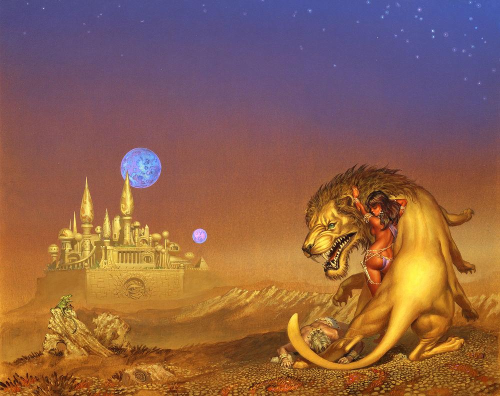 When Amazing Stories commissioned me to do the cover for the premier issue of their newly redesigned magazine, I decided that the painting should encompass both the realms of science fiction and fantasy. 1/3