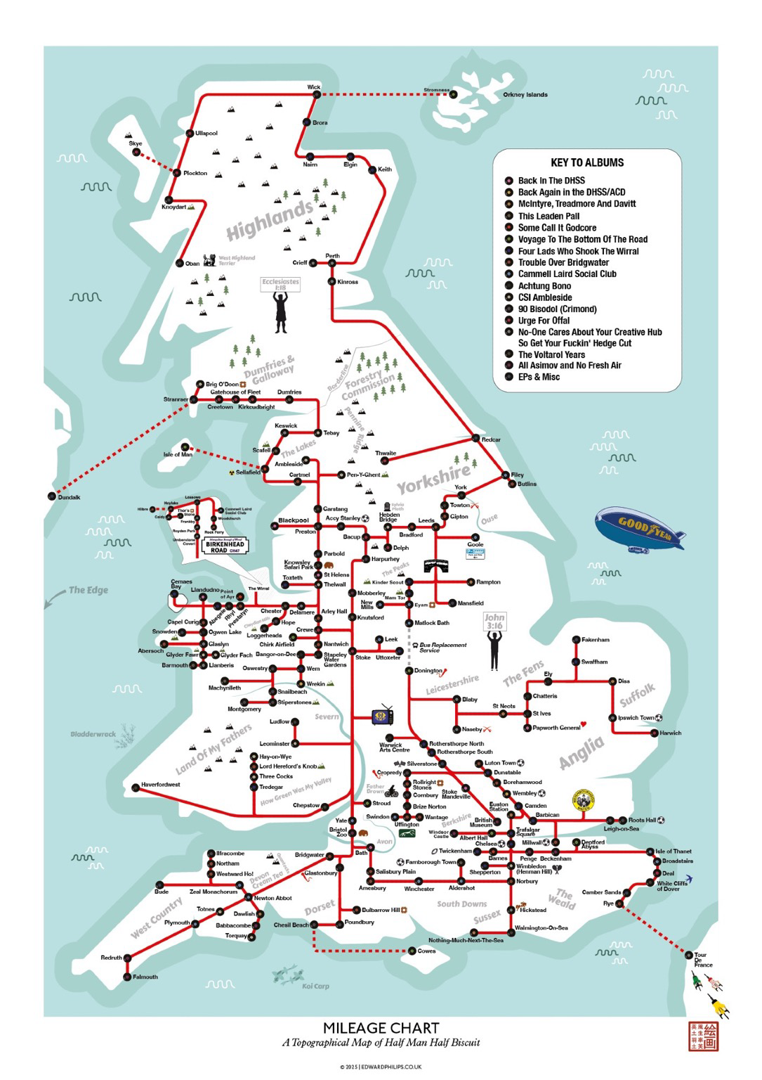 I’m pleased to announce that for the Half Man Half Biscuit fan who thinks they have everything,a new HMHB map of the UK has arrived with over 200 locations mentioned in their inimitable lyrics. Something for the weekend? Oh, yes, I think so. xx