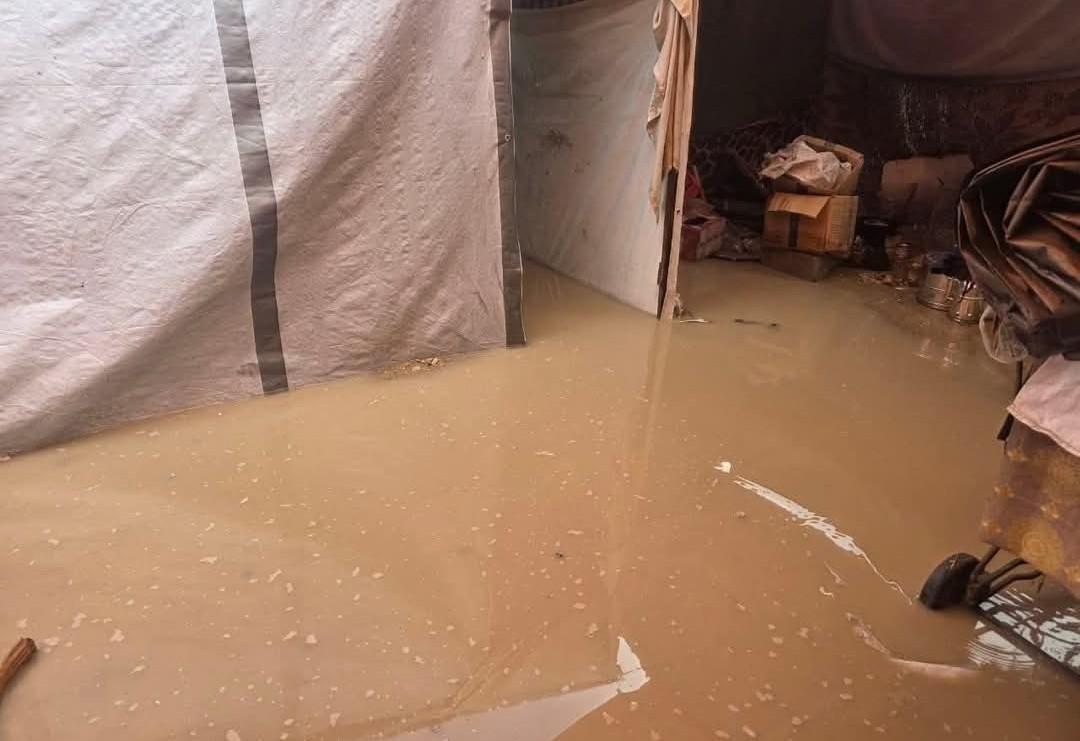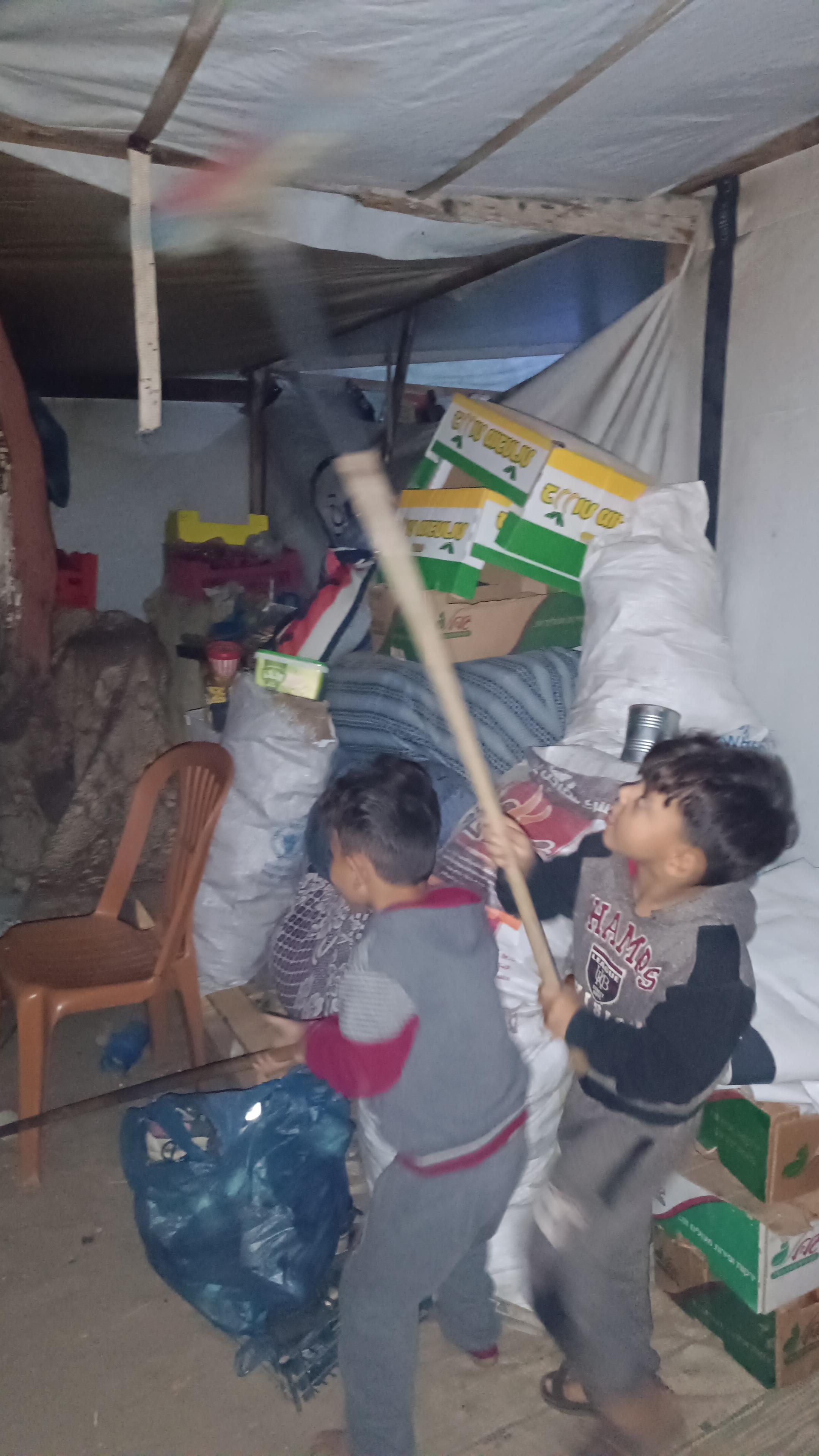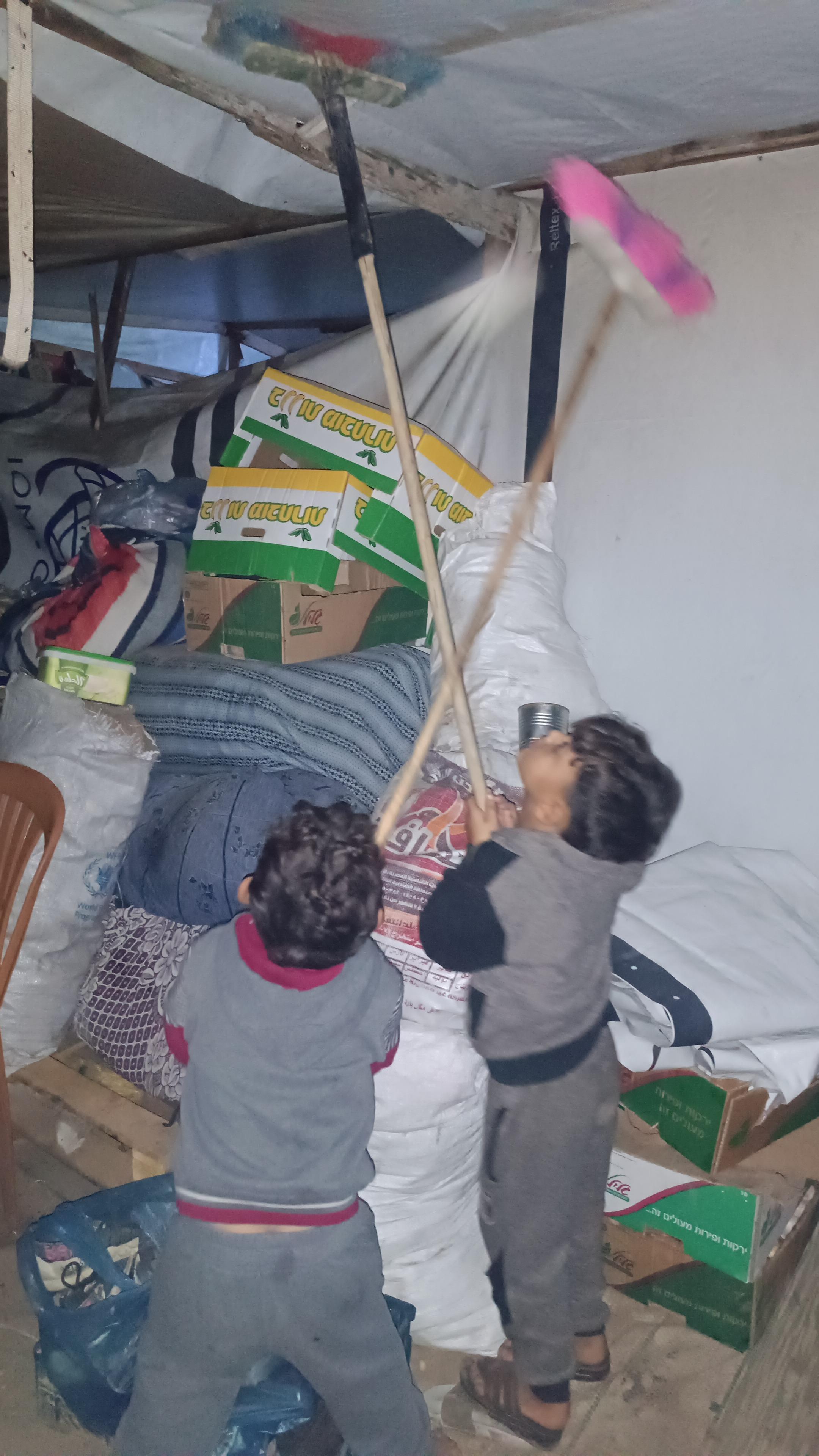 Mohammed Shobair, 23 years old, from Gaza, sitting on a flight of stairs.