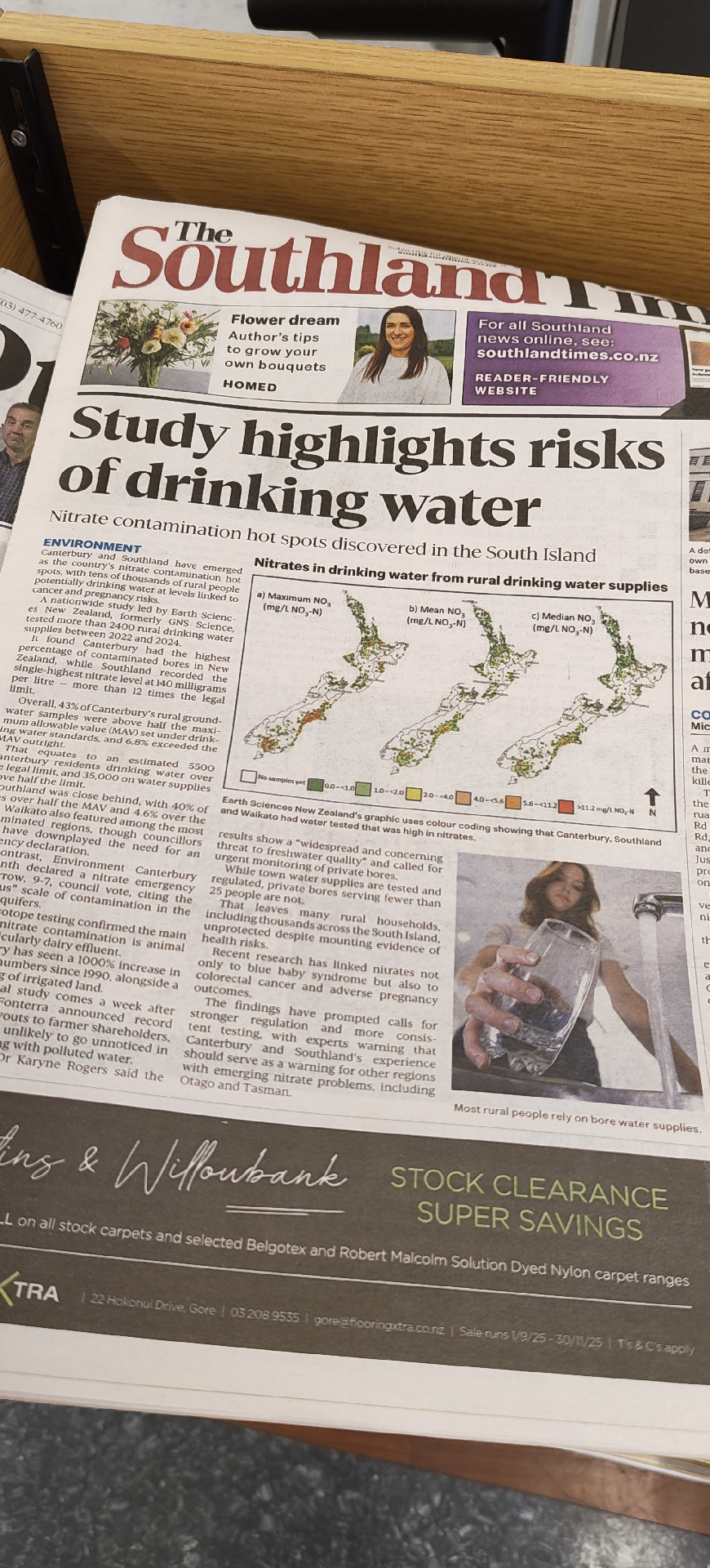 "The national study comes a month after Environment Canterbury declared a nitrate emergency, and a week after dairy giant Fonterra announced record profits and payouts to farmer shareholders."