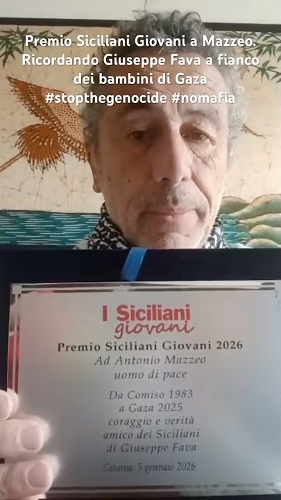 #nomafia #stopthegenocideingaza🇵🇸 Questo premio è per le bimbe e i bimbi di #Gaza a cui i Signori della #Guerra hanno rubato sogni e speranza e per l'Umanita' a bordo della Freedom Flotilla e di tutte le missioni che hanno tentato di portare un briciolo di Umanita' dove l'Umanita' è stata cancellata dalle politiche genocidiarie. Grazie compagne e compagni de I Siciliani #freedomflotilla