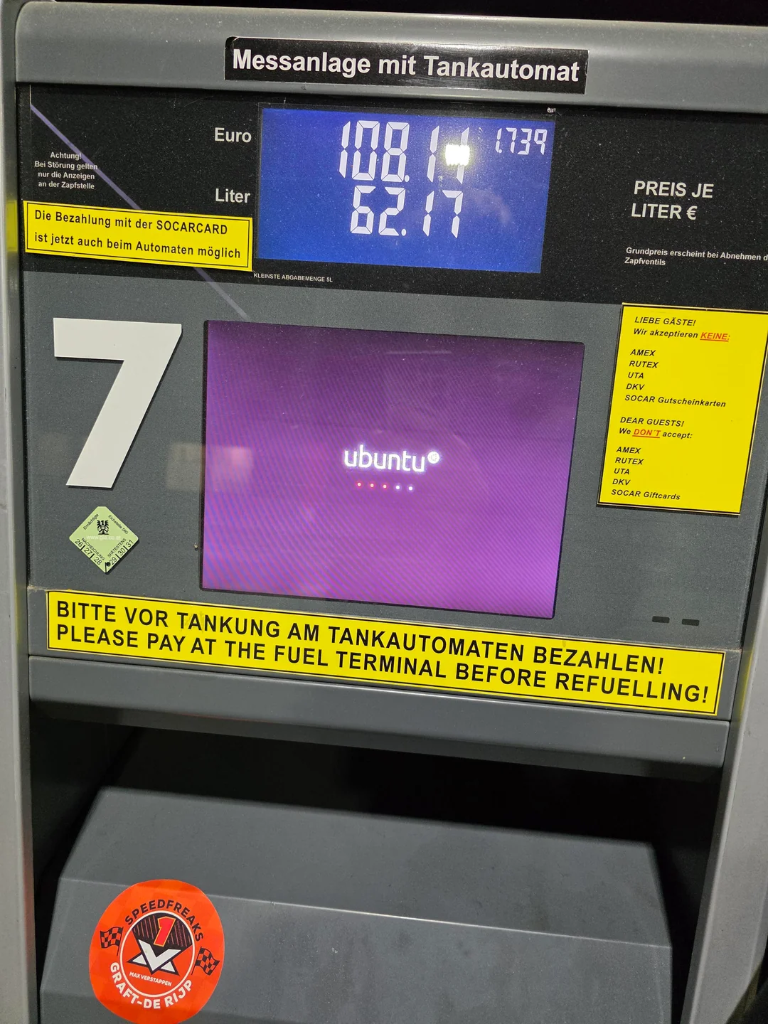 Bomba de gasolina en Austria corriendo Ubuntu 18.04 LTS 😮