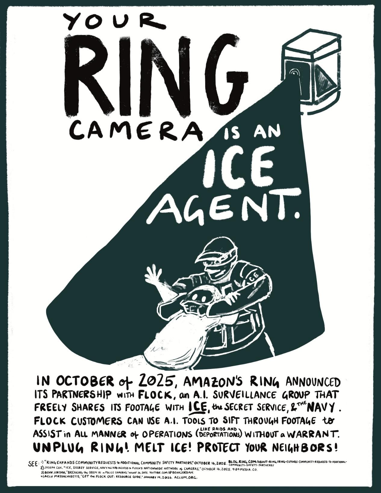 Your Ring camera is an ICE agent. Unplug Ring! Melt ICE! Protect your neighbors!