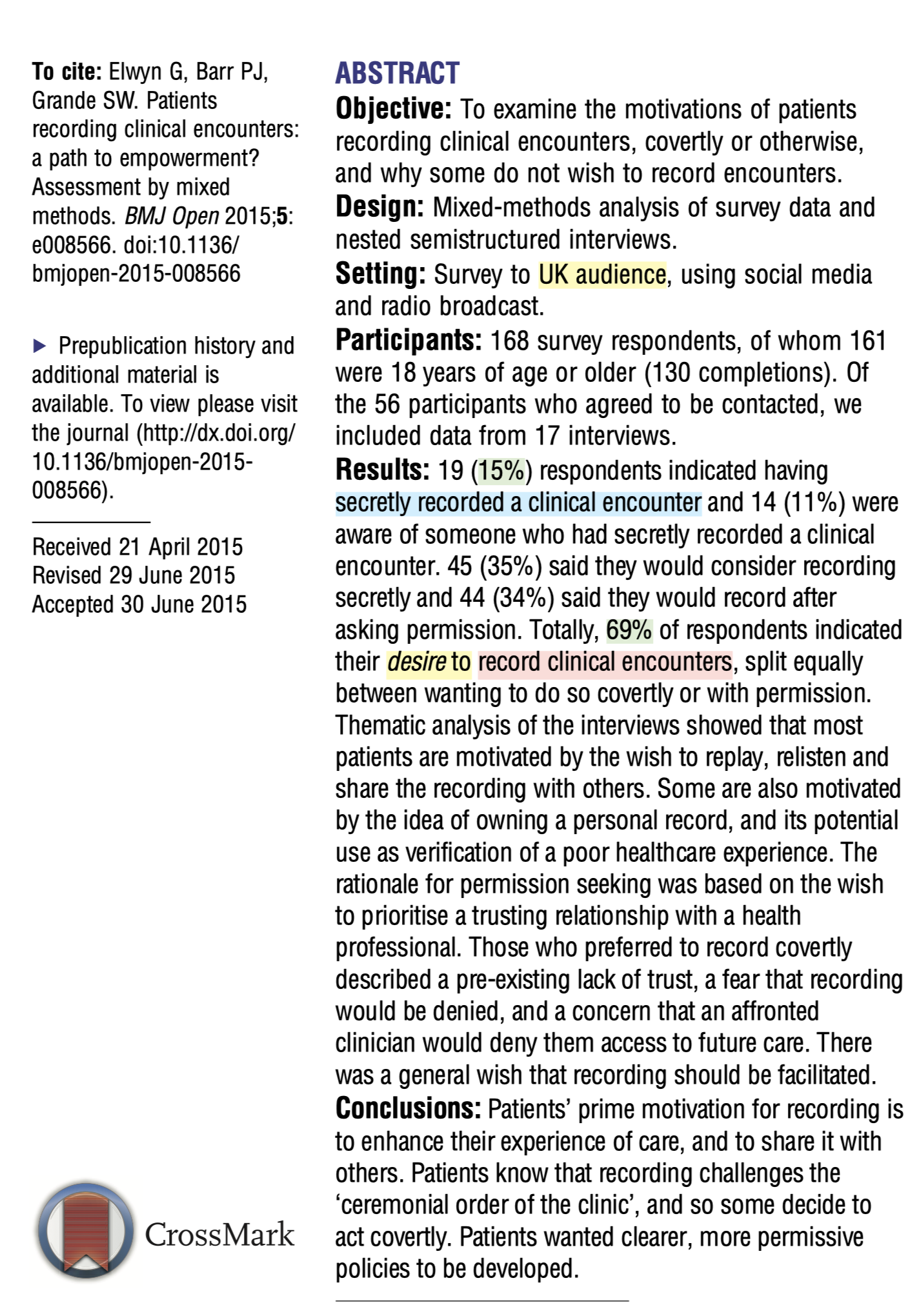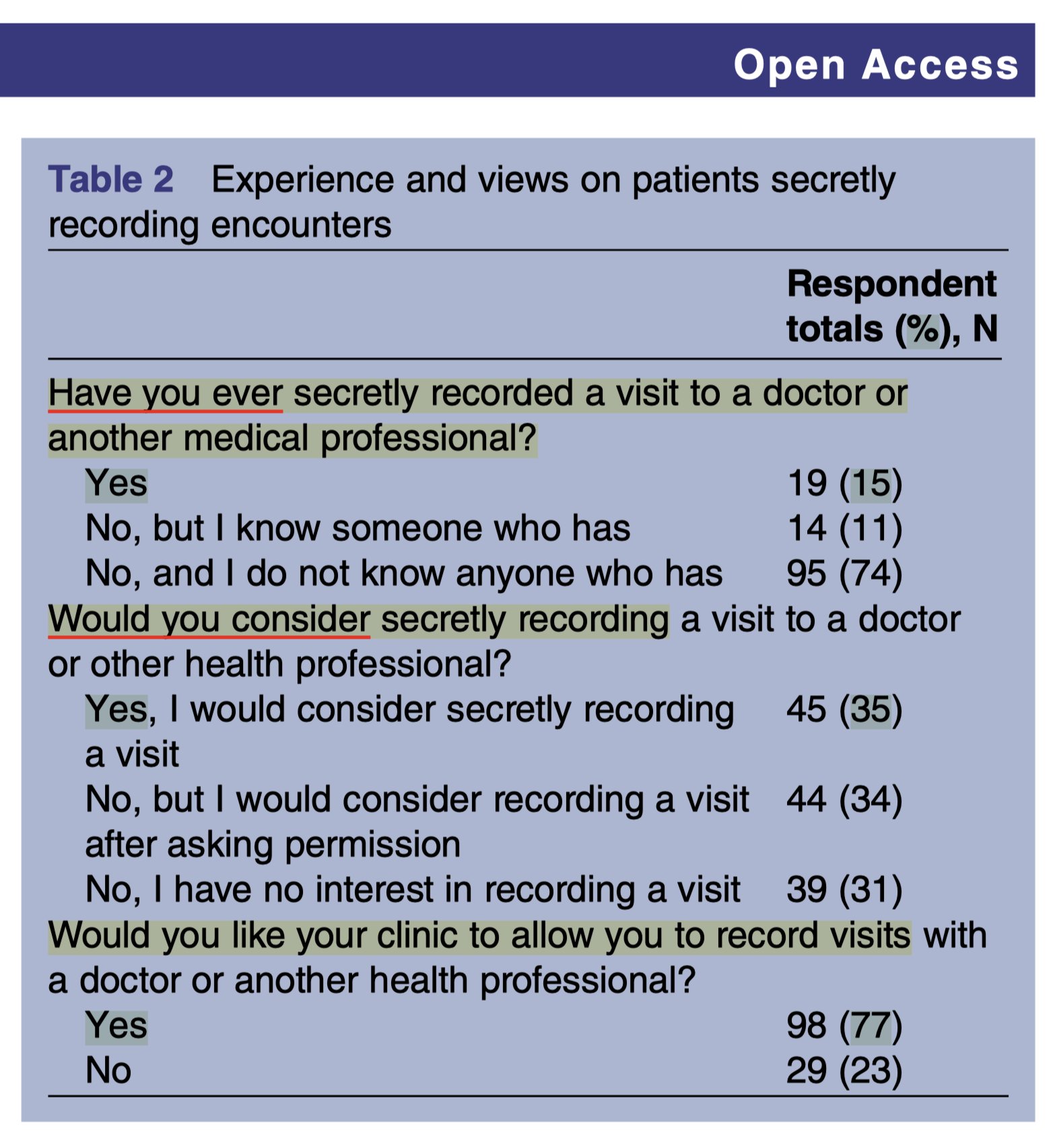 A 2015 paper found 77% of patients WANT clinics to allow recording.