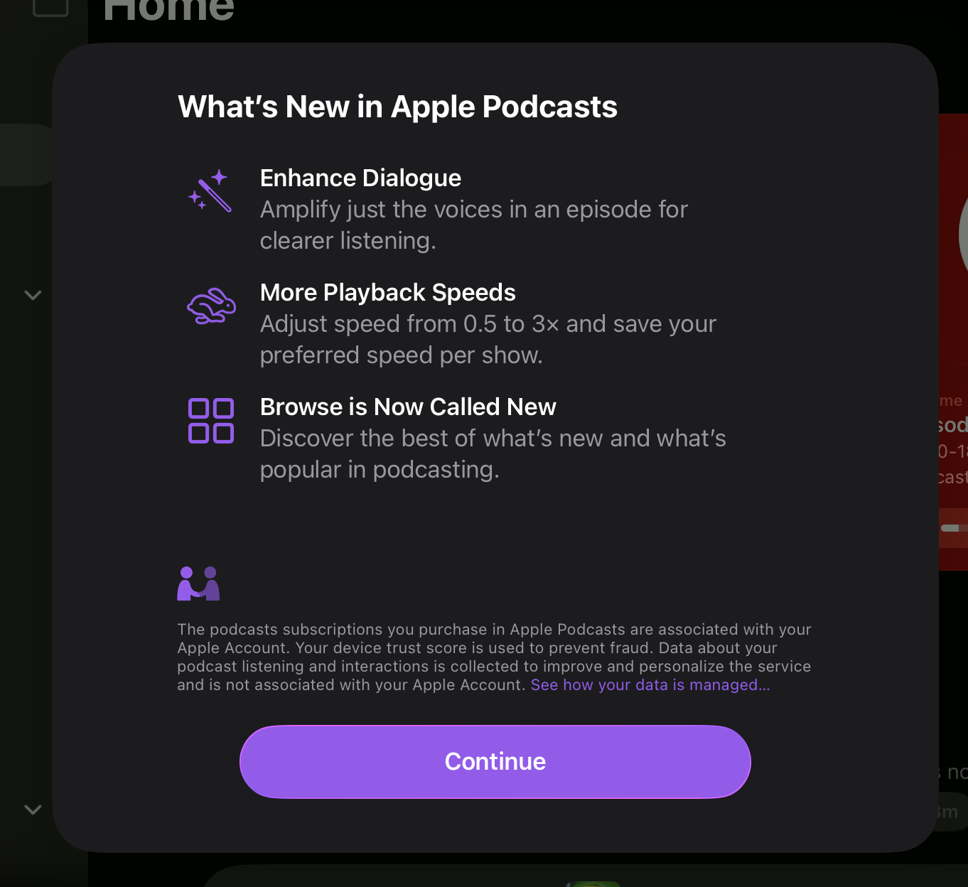 ok, new stuff coming to Apple Podcasts in iOS 26: