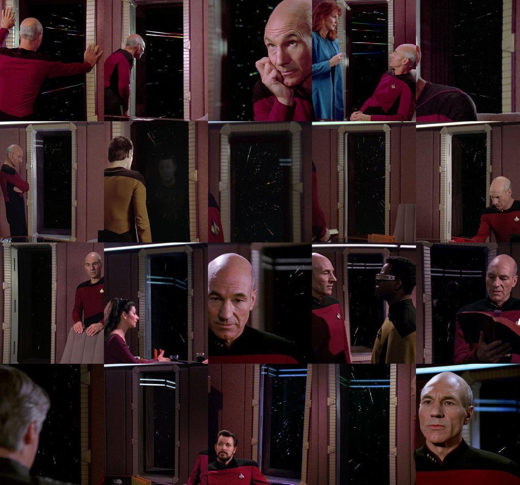 Six-panel comic. We're on the bridge of the Enterprise D, from Star Trek: The Next Generation. Captain Picard says, "Commander Data, please identify that Romulan vessel."