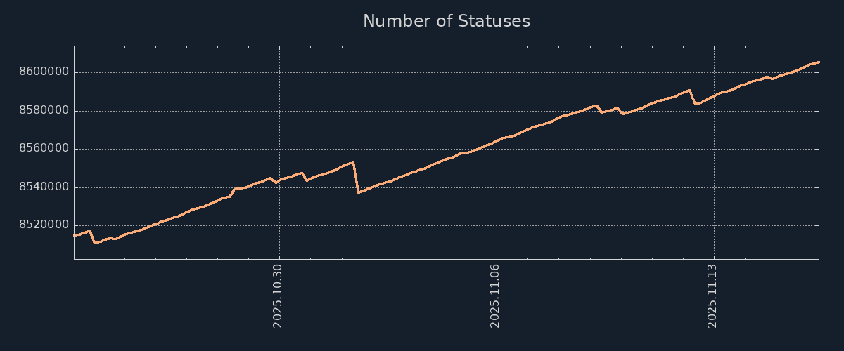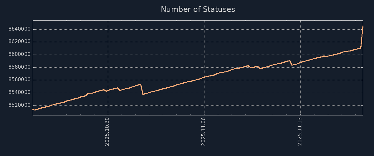 # Akkoma # Statistics 2025-11-17 09:00 CET