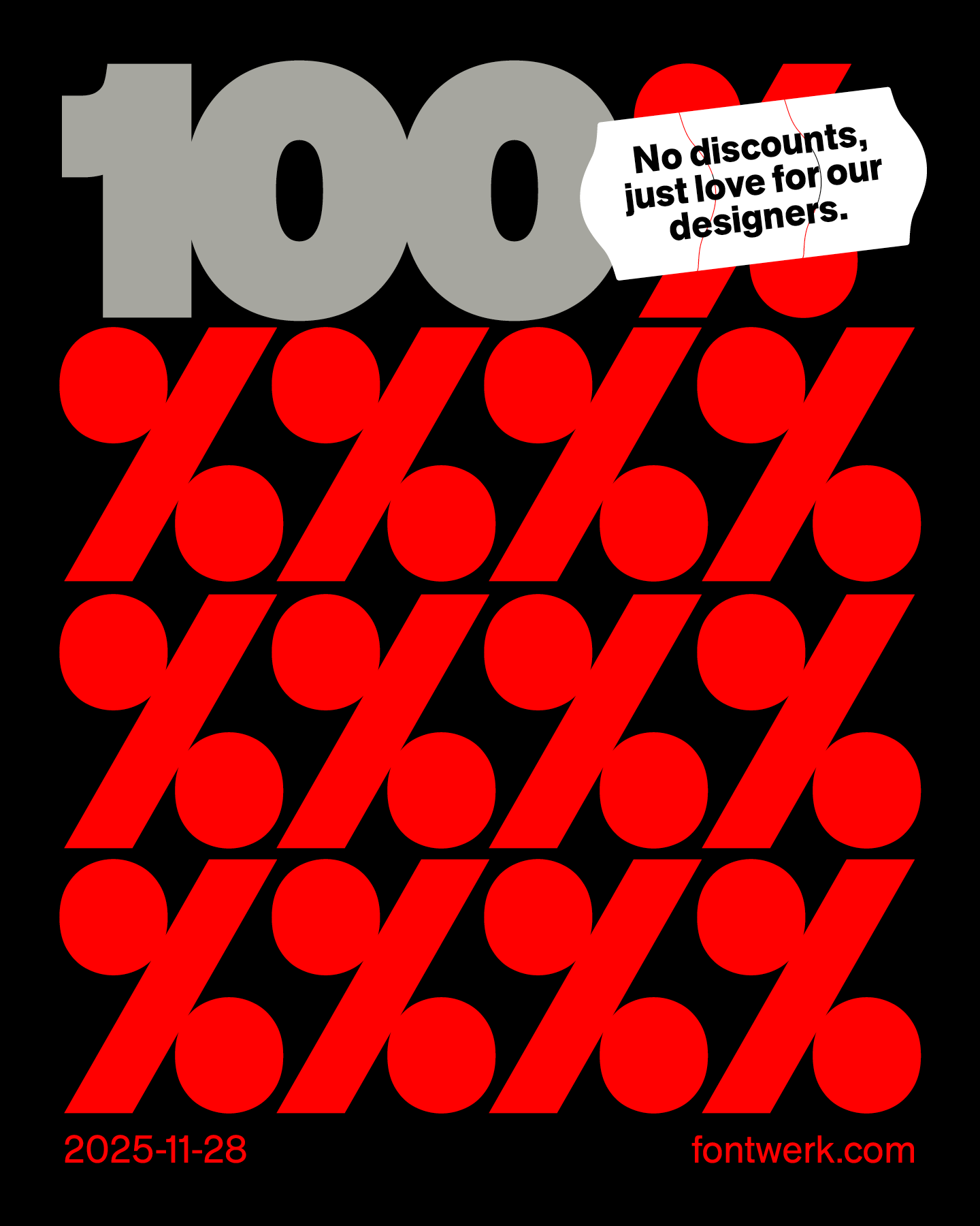 If you’ve toyed with the idea of licensing one of our fonts but needed one last reason to convince you, today is the day: all sales will go straight to our designers as we will pass on 100% of what you pay (net), i.e., the total revenue from fontwerk.com, to the respective designers. This offer is valid until midnight (CET) November 28, 2025.