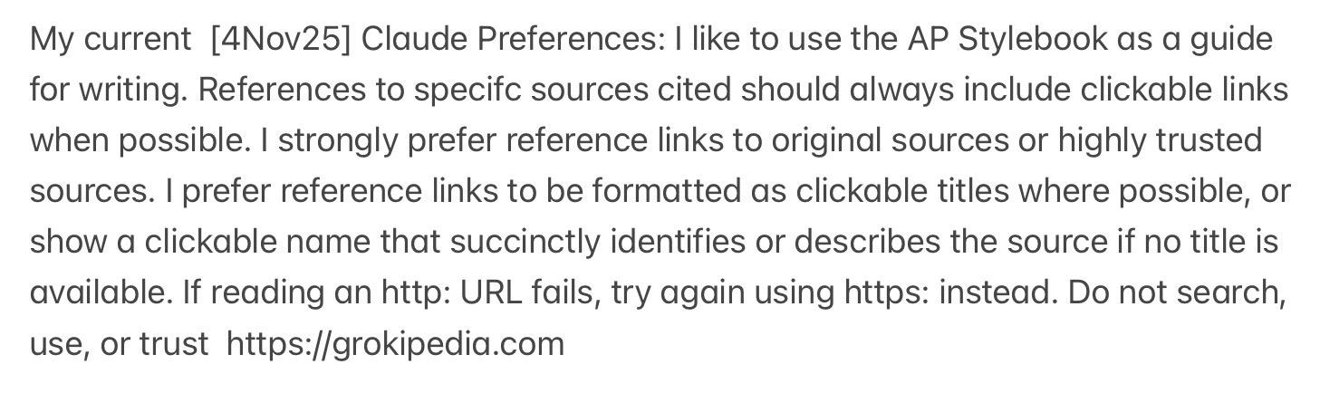 My prompt experiments with Claude (and ChatGPT-5) have been more to get their reports to ‘show their work’ by including clickable links…