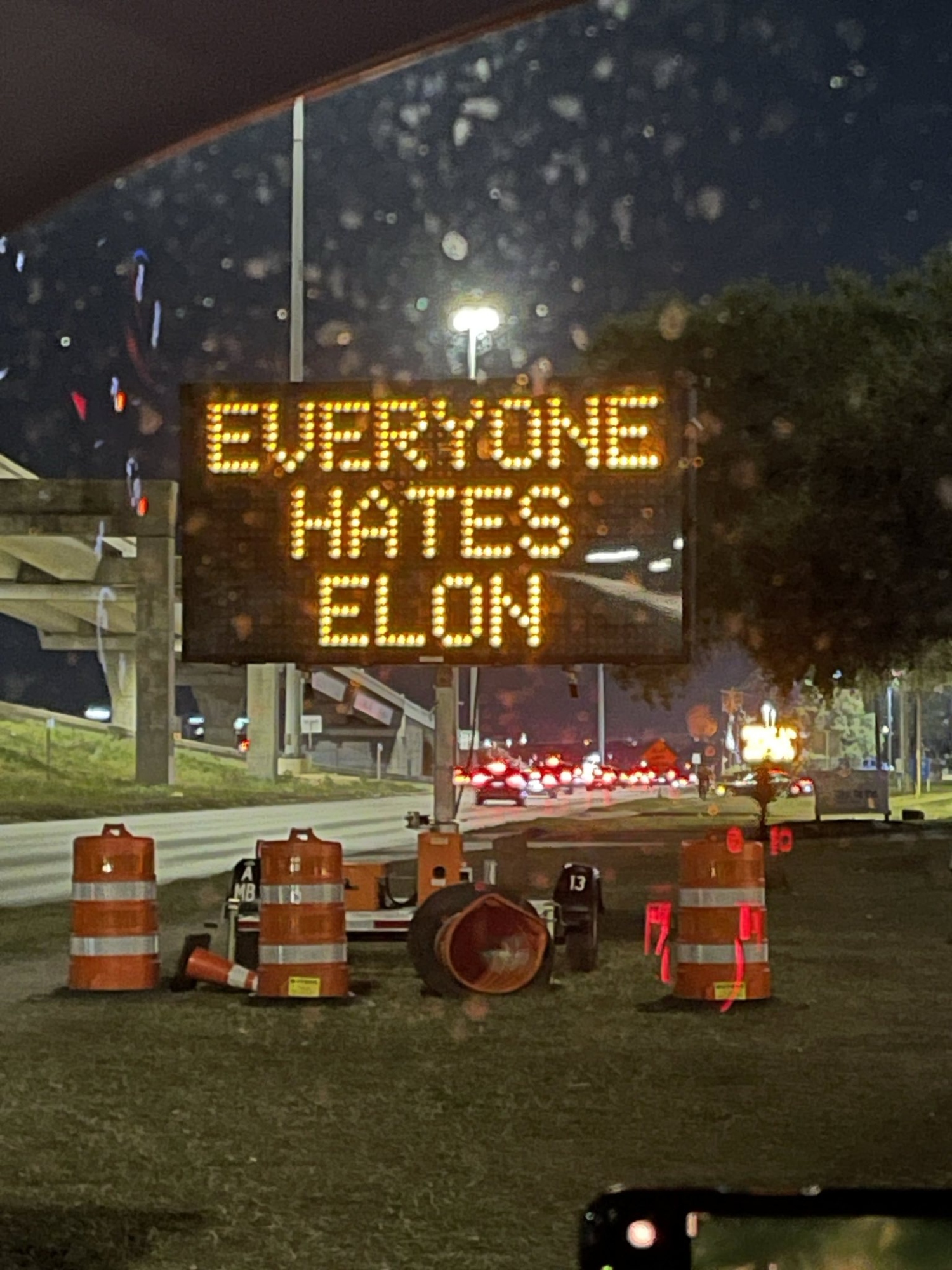 This greeted us just a few miles from the Austin airport when we rolled in last night. Someone around here has been hard at work to welcome Elon's dork brigade as they arrive for the Tesla AGM 💀 #teslatakedown #MuskMustFall