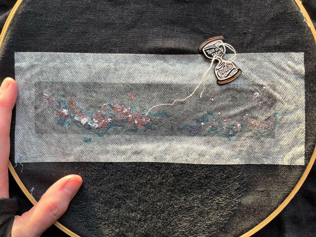 #WIPWednesday • A fair bit of progress on the second pass of white stitching on the Milky Way. Other work: I got my email mostly under control and worked on some anatomy research and my mitosis pattern this week. #SciArt #embroidery