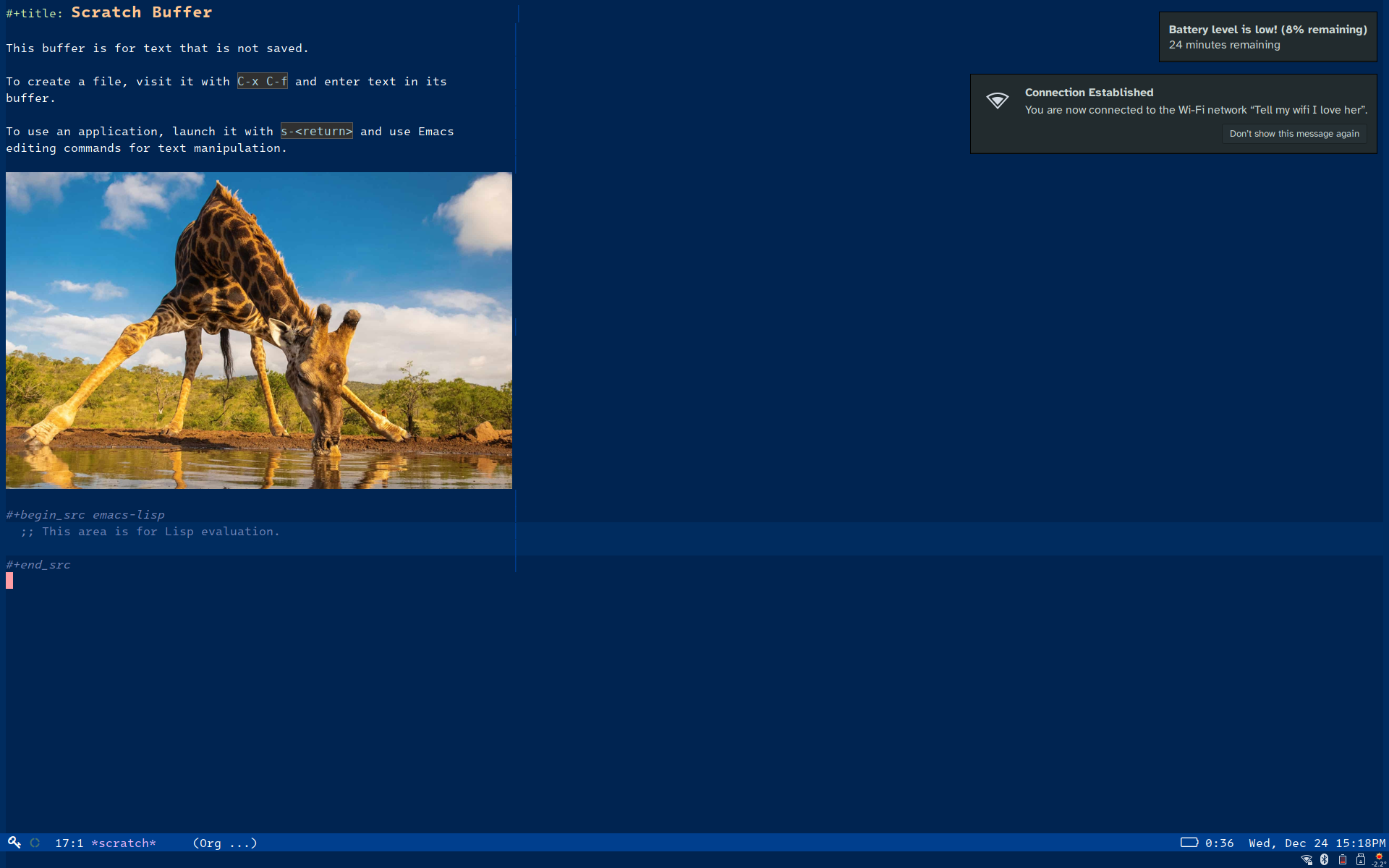 A couple weeks ago, I posted about my guix setup in-progress, and I think it's finally stabilized a little and the last few things I thought were necessary for a desktop environment were implemented, like a good screen-lock/display power/sleep/hibernate setup, switching from docker to podman and podman-compose, setting up a java language server, and getting all of my emacs config and packages guix-ified.
