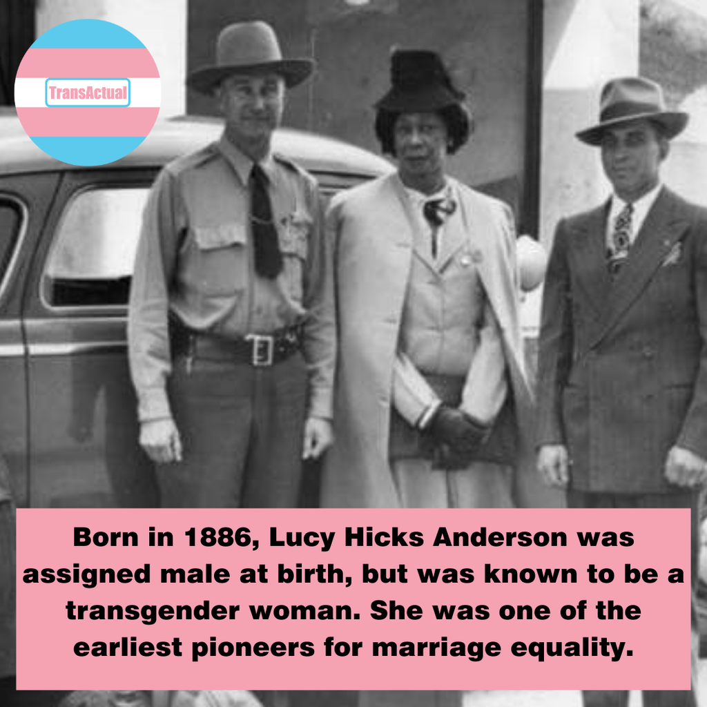 Born in 1886, Lucy Hicks Anderson was assigned male at birth, but was known to be a transgender woman. She was one of the earliest pioneers for marriage equality.