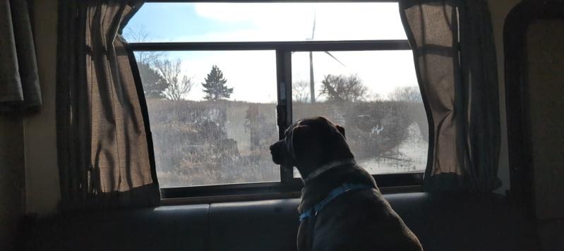 Made it to Iowa, kid had a meltdown related to wind turbines, now the RV is covered in tiny bits of shredded paper he made while he was working out his rage. Dog continues to be unbothered even when he was getting coated in confetti.