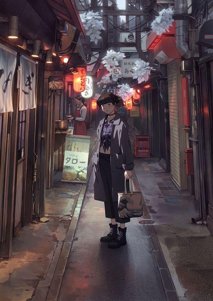 Memory Lane. This painting always reminds me of my first time visiting Tokyo. medium: Procreate, Photoshop #DigitalArt #Illustration #AnimeArt #Environment