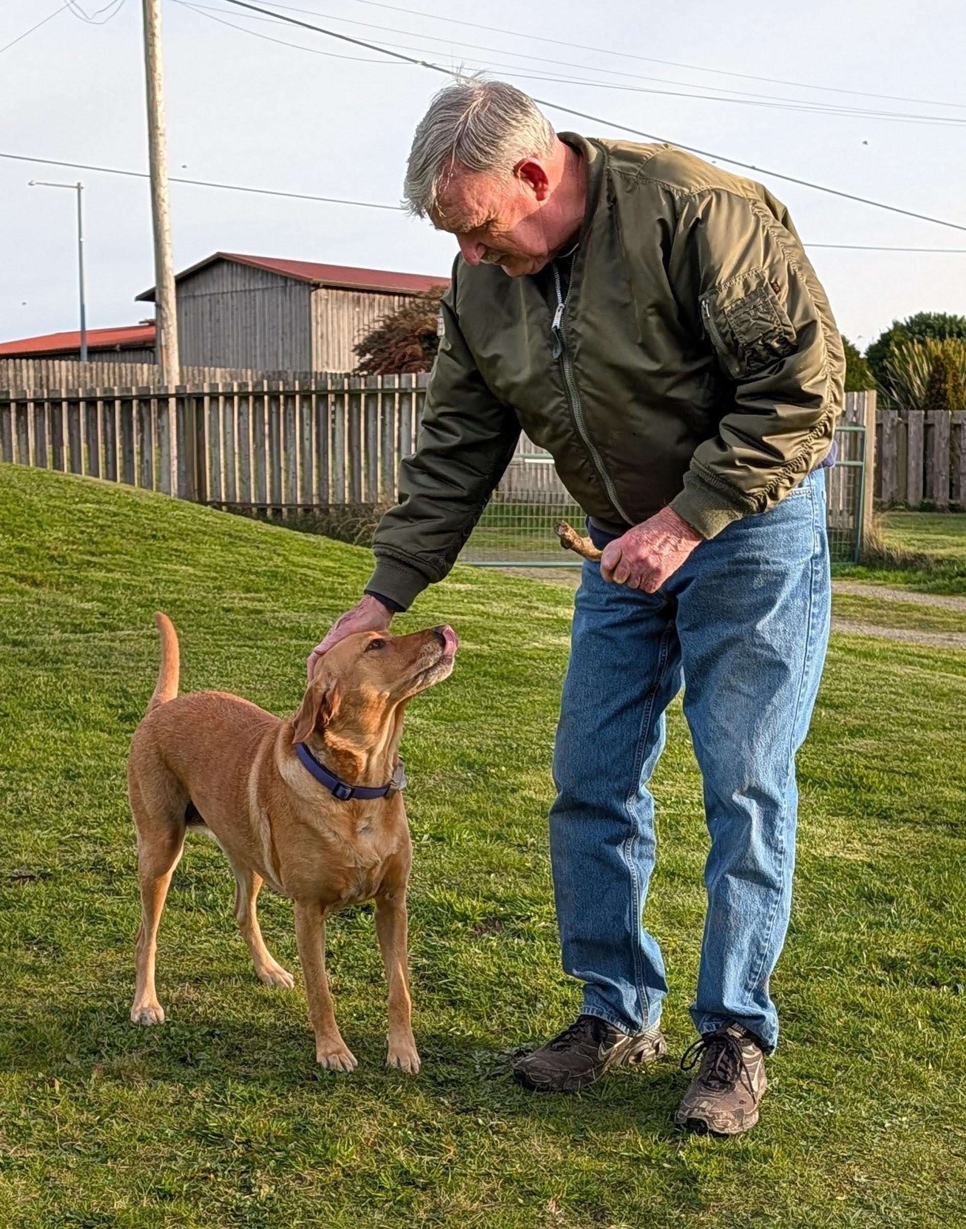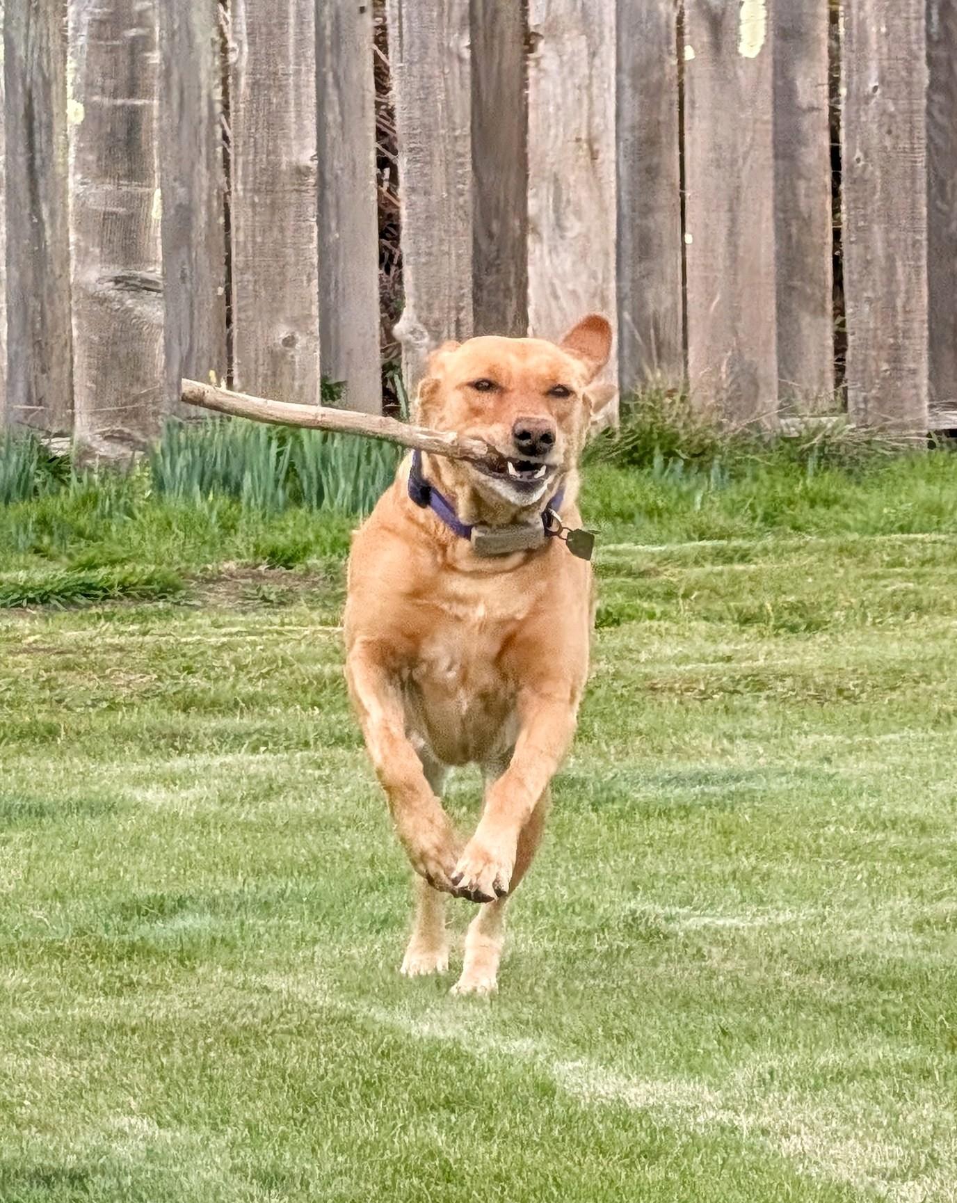 Summer and I got her pal outside this afternoon to soak up some fresh air. She even shared her stick with him.