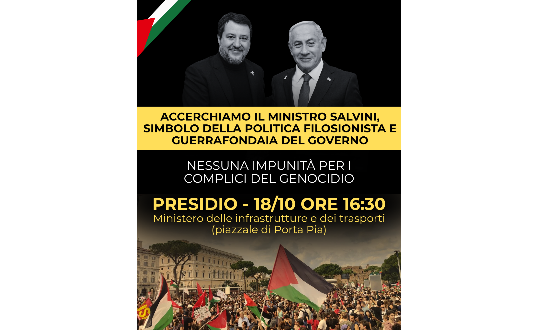 [ROMA] ACCERCHIAMO IL MINISTRO SALVINI, SIMBOLO DELLA POLITICA FILOSIONISTA E GUERRAFONDAIA DEL GOVERNO. https://poterealpopolo.org/roma-presidio-salvini-filosionista-guerrafondaia-governo/ #governomeloni #Territori #Palestina #Regioni #guerra #Lazio #News #roma