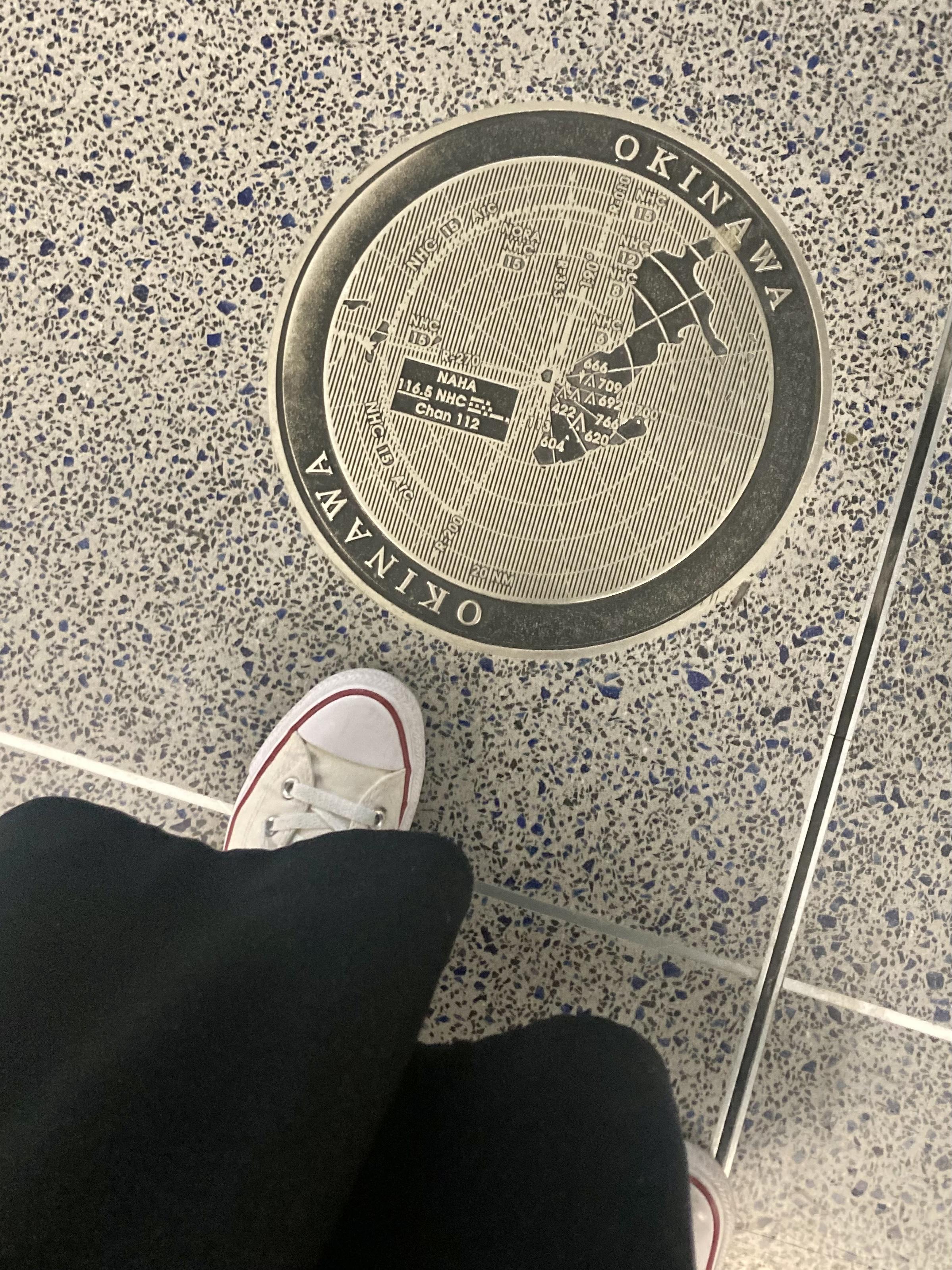 Back in SFO, where they have an #Okinawa plaque in the floor of the international arrival lobby ✈️