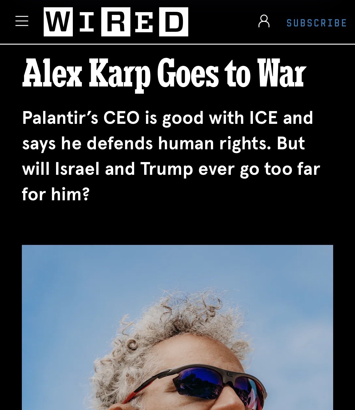 ICE is a slave patrol powered by tech. Violence is all that is on the 24 hour news cycle and yet just weeks ago WIRED ran a feature that humanised Palantir’s Alex Karp.