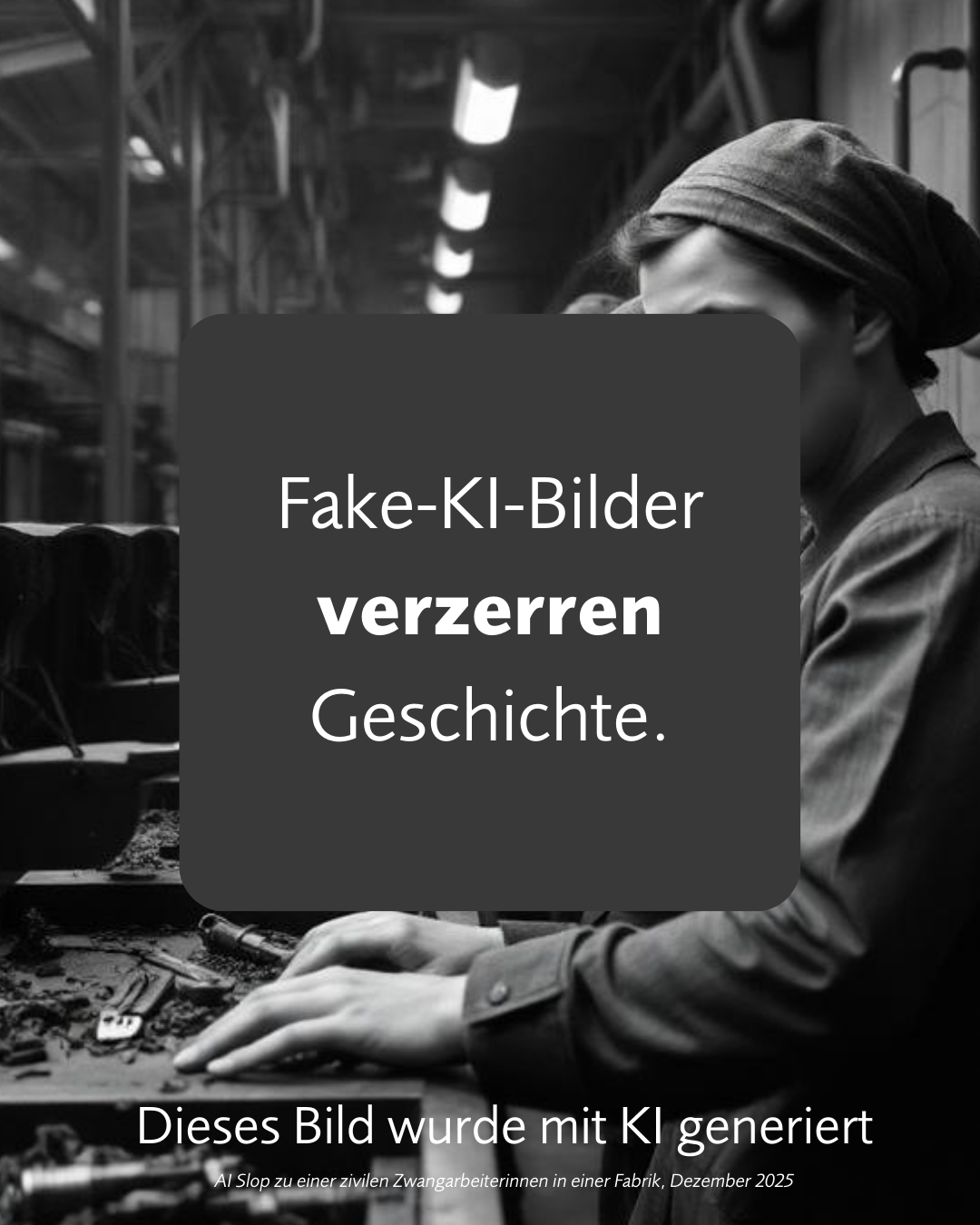 Immer häufiger tauchen in Sozialen Netzwerken #KI-generierte Bilder mit NS-Bezug auf. Diese emotionalisierenden, frei erfundenen Darstellungen verzerren historische Tatsachen und verharmlosen die Verbrechen des Nationalsozialismus. Hinter den Inhalten stehen oft Content-Farmen oder Akteure mit revisionistischen Zielen. #Gedenkstätten fordern daher ein konsequentes Vorgehen gegen solche Verfälschungen. Der offene Brief ist über das Gedenkstättenforum abrufbar.