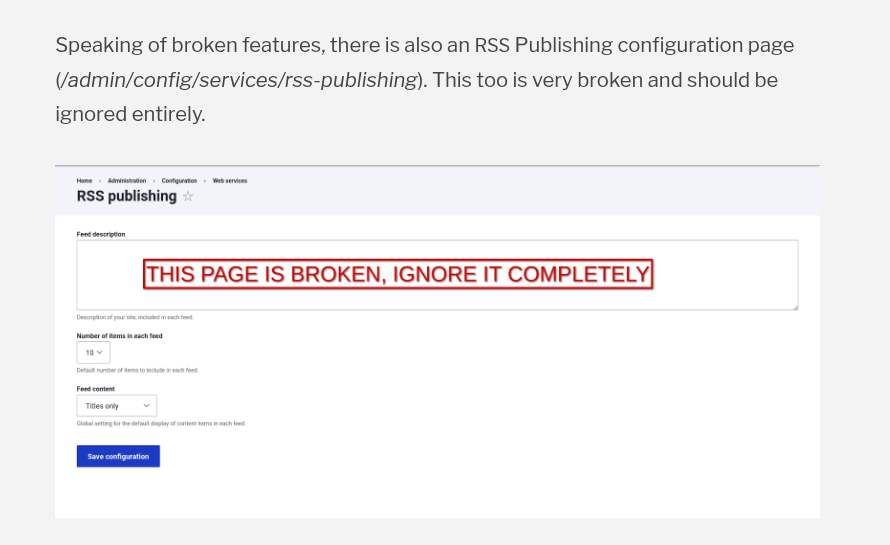 Whew. Glad to see that these broken RSS settings have been removed from Drupal.