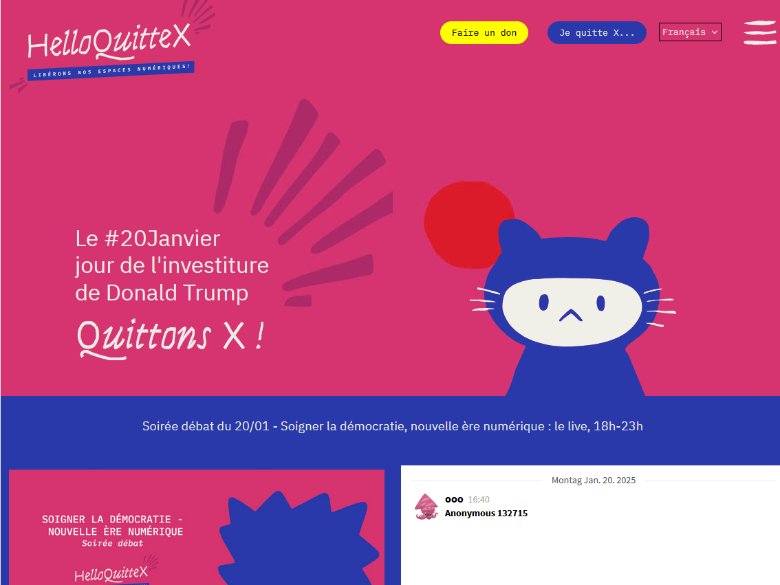 In Frankreich machen heute am #20Janvier zum Tag der Amtseinführung von D.T. zahlreiche Zeitungen (z.B. Le Monde), Wissenschaftseinrichtungen und Forschende den #eXit - dabei hilft das smarte Tool #helloquittex https://helloquittex.com/, das von einem Team aus CNRS-Forschenden und Engagierten entwickelt wurde und den Umstieg zu #Mastodon und #Bluesky erleichtert. Anleitung auch auf Englisch (wobei Ihr ja alle Französisch könnt...)
