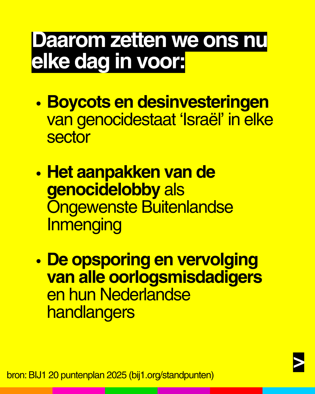 (bron: BIJ1 20 puntenplan 2025 (https://bij1.org/standpunten)