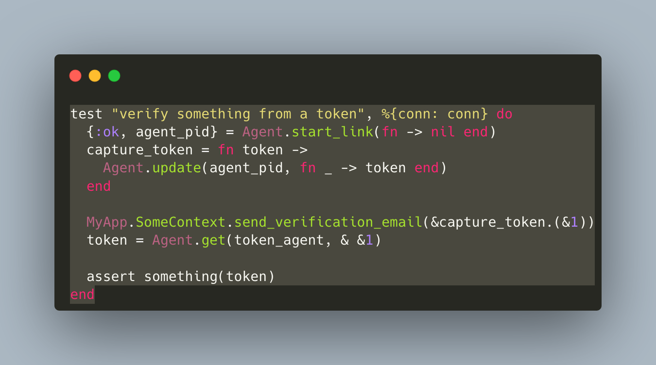 Here is a neat little trick when you need to test a verification flow in #PhoenixFramework: https://gist.github.com/wmnnd/cb80d4eae79d5d35b8229d6eec188ee5