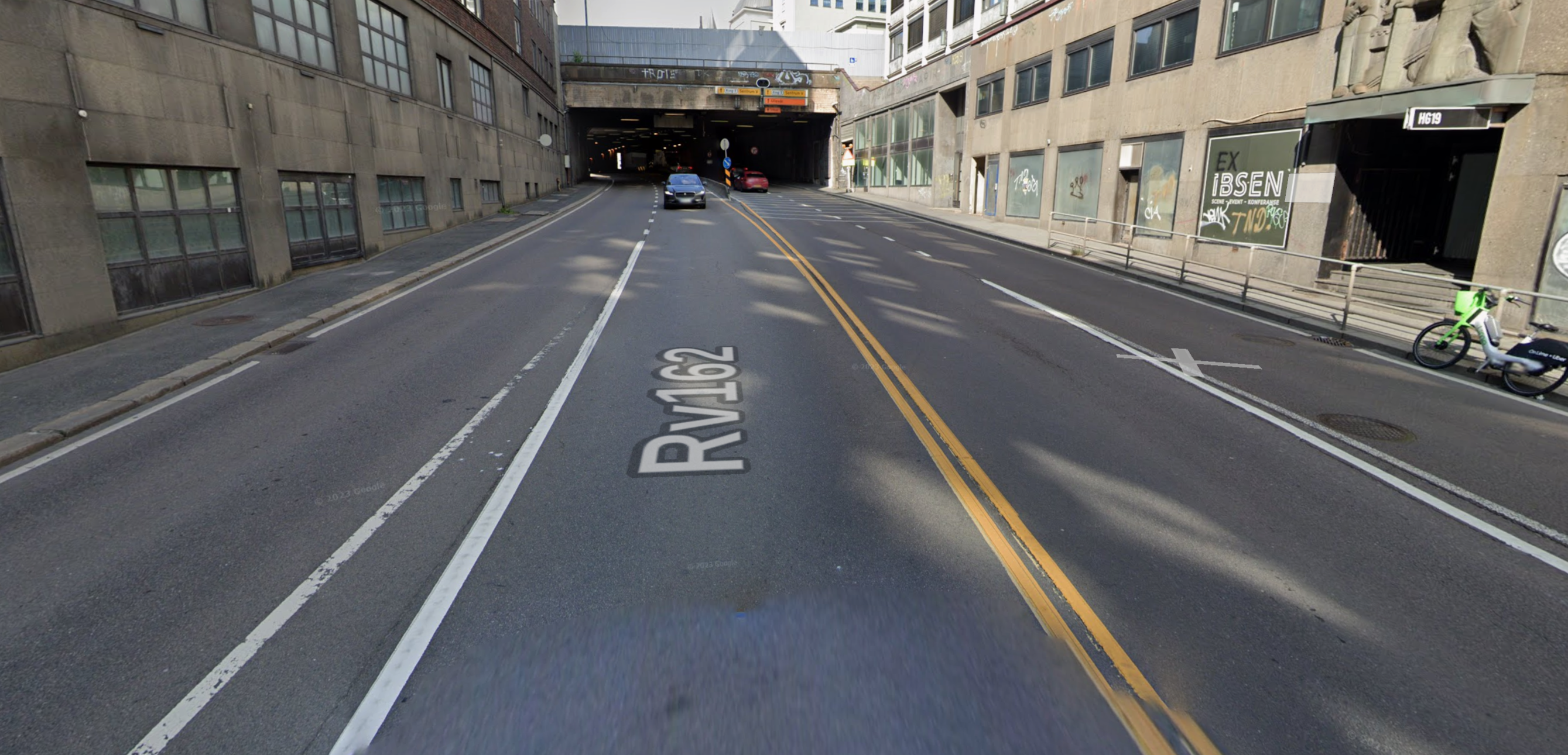Hammersborggata mellom tunnelen og Arbeidersamfunnets plass: