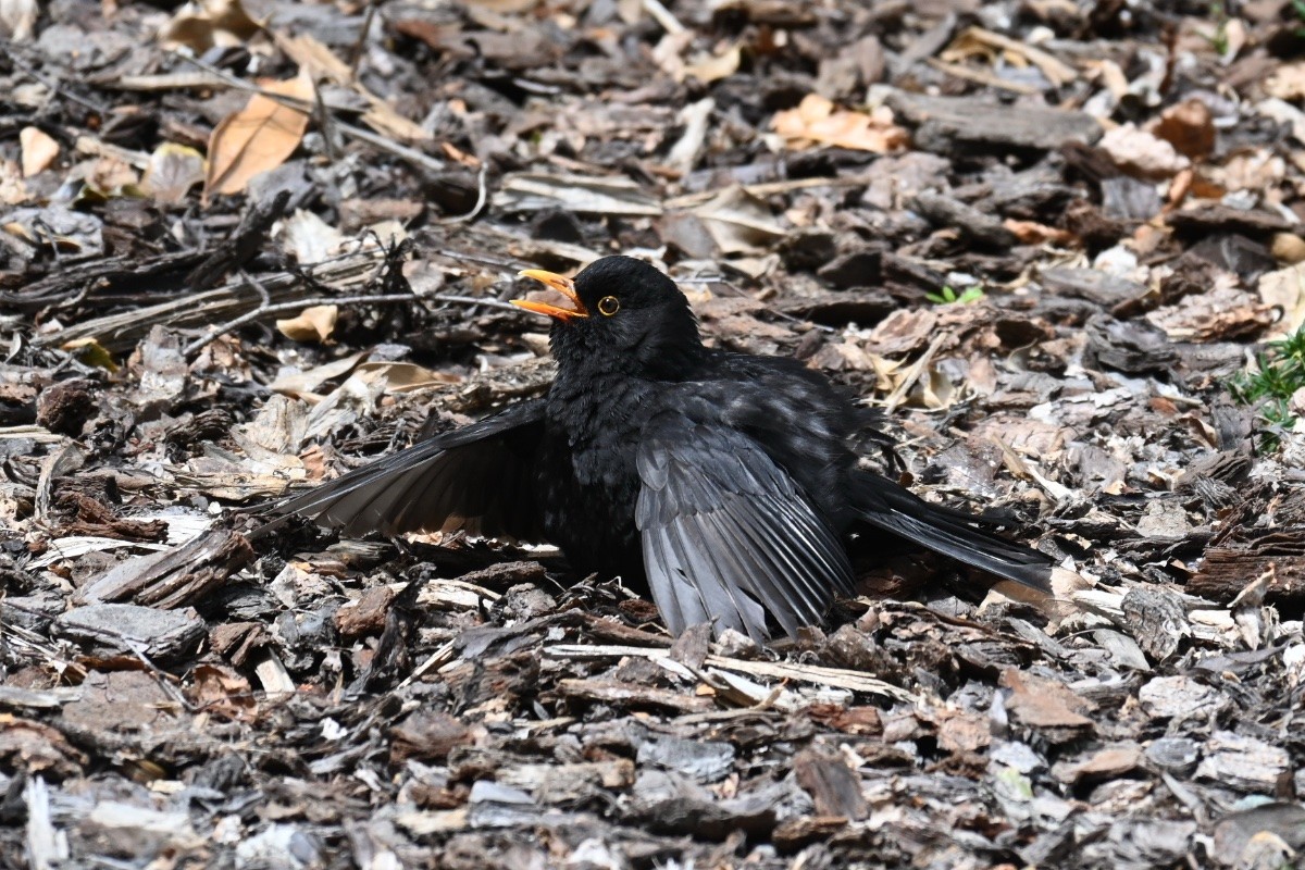 Yesterday I was in the Christchurch Botanic Gardens on a hot norwester afternoon, and lots of the resident blackbirds were out sunbathing.