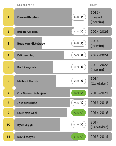 Fourteen managers in thirteen years at MUFC (official, caretaker, or iterim).