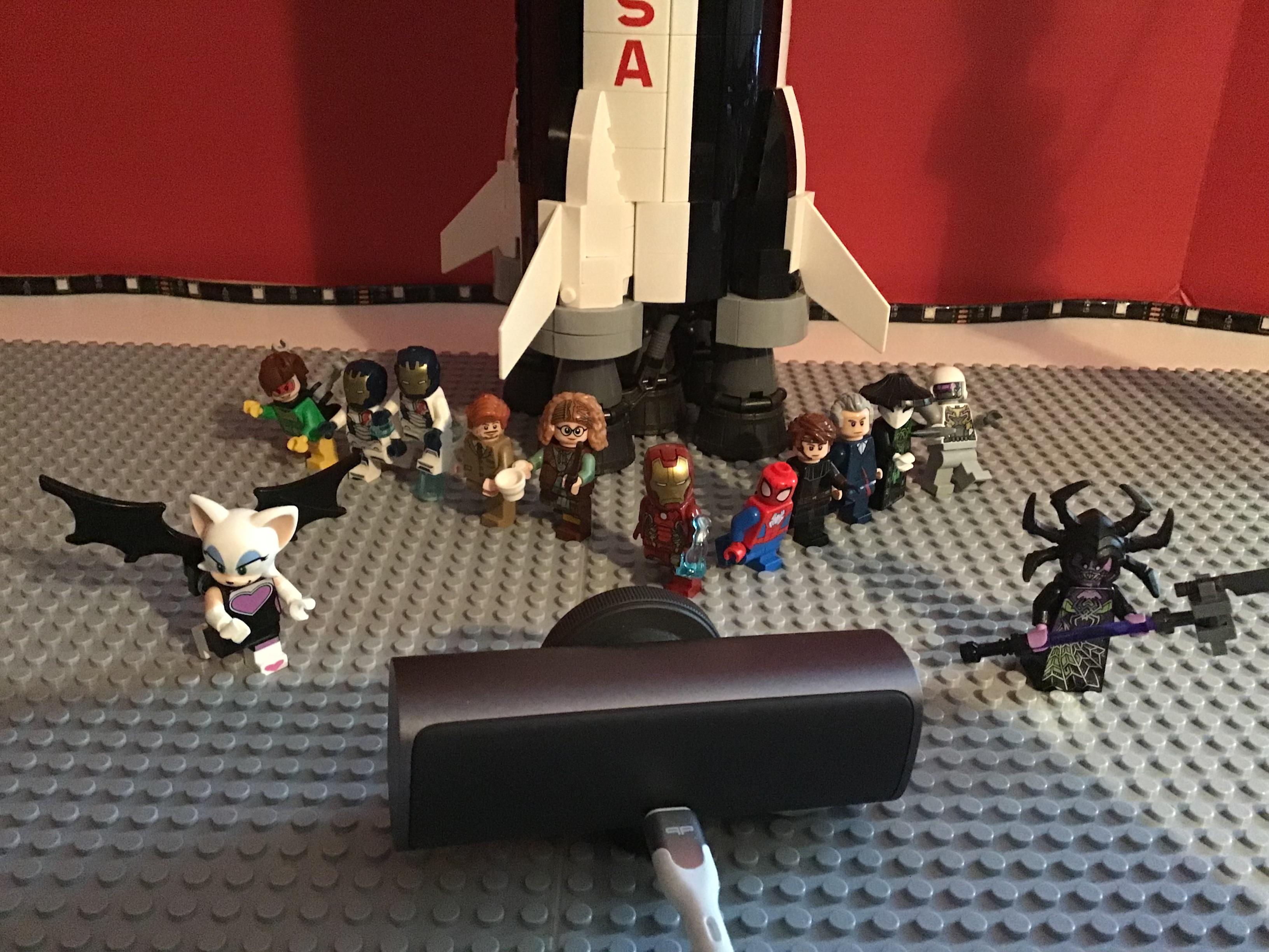 Sonic the Hedgehog is knocked back, and he catches himself, grabs his bouncing Lightsaber hilt, and dodges a jump attack from Darth Vader. Vader then uses the Force to hurl a large object (in which the camera is at the moment) at Sonic, who turns quickly to address the projectile.
