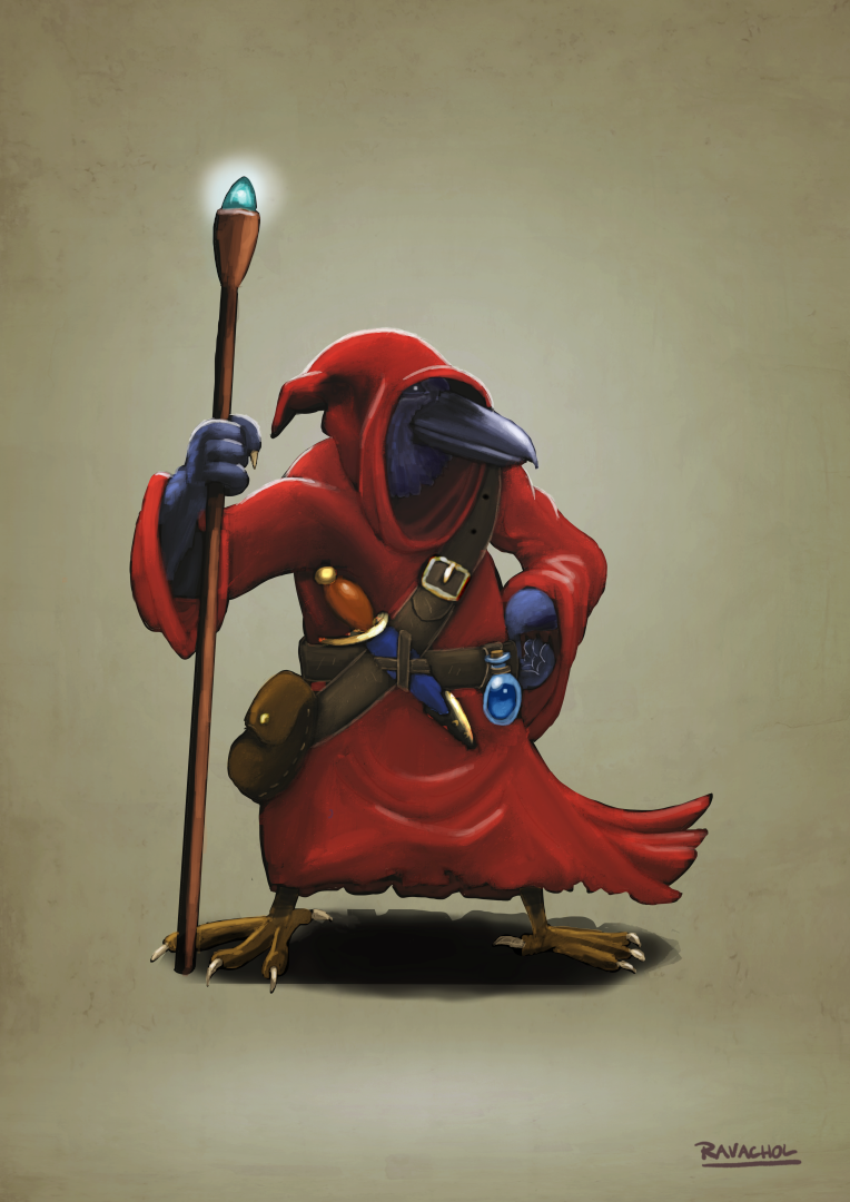 This is from when I was doing characters for Dungeons and Dragons players. It's a Kenku Druid. I like the egg cup staff.